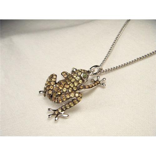 You are looking at an estate 14K white gold yellow sapphire and peridot frog pendant. This unique piece features 2 natural round peridots as the eyes measuring 1 mm in diameter and 82 natural round yellow sapphires measuring 1 mm each, with a total weight of one carat. The pendant measures 1 and 1/8 inches long including the bail and 3/4 of an inch wide.The piece weighs 4.4 grams. It is in mint condition.