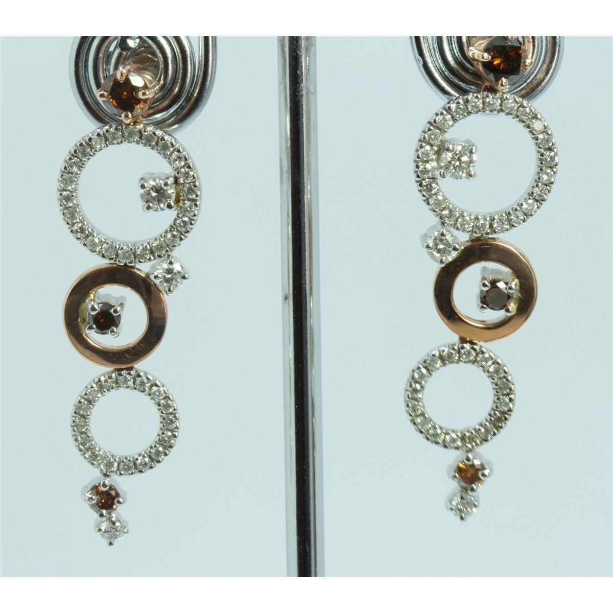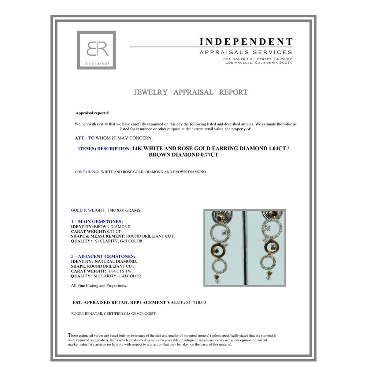 14K WHITE AND ROSE GOLD EARRING 8.60GRAM DIAMOND 1.04CT / BROWN DIAMOND 0.77CT
