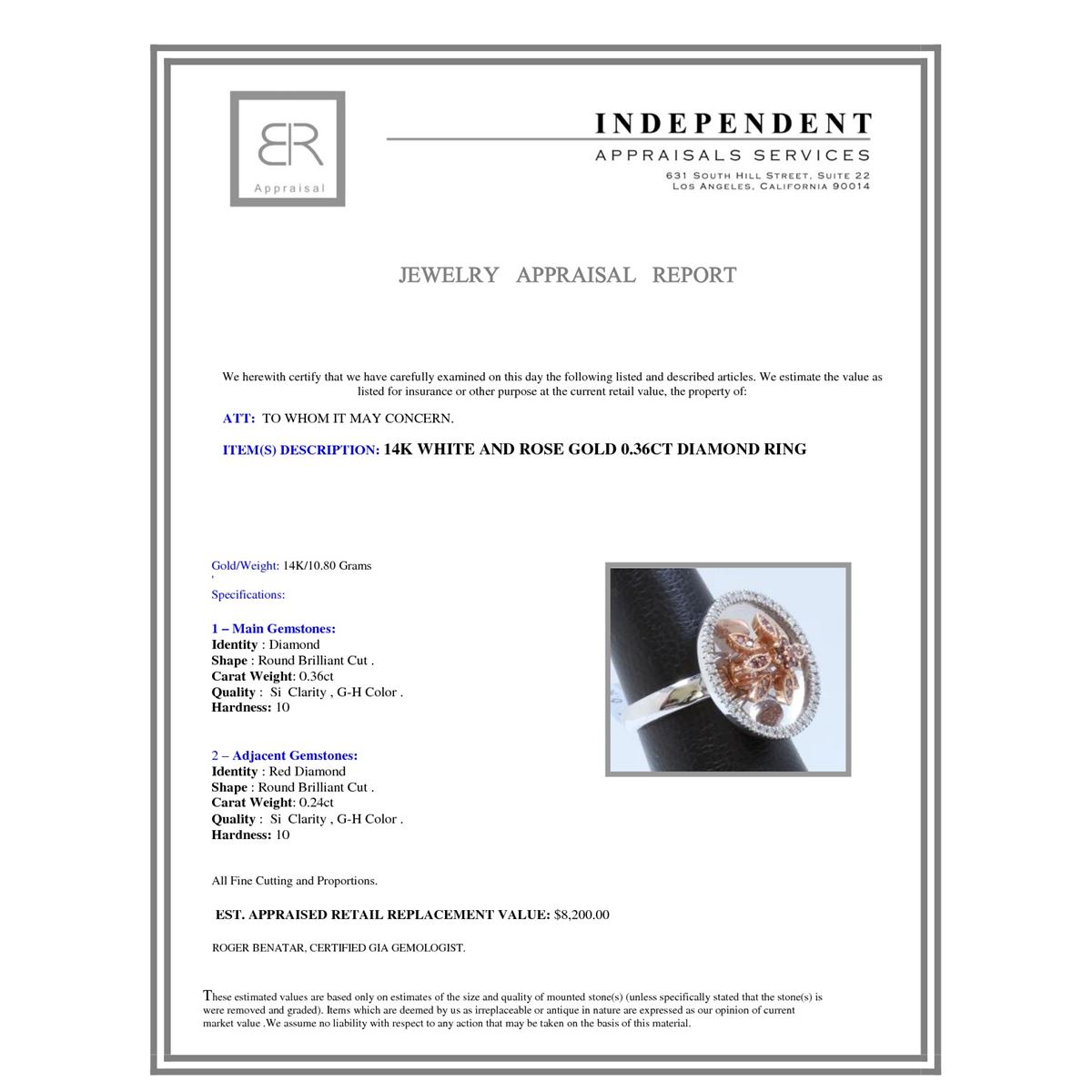 14K WHITE AND ROSE GOLD RING :10.8g/Diamond:0.36ct/Red Diamond:0.24ct