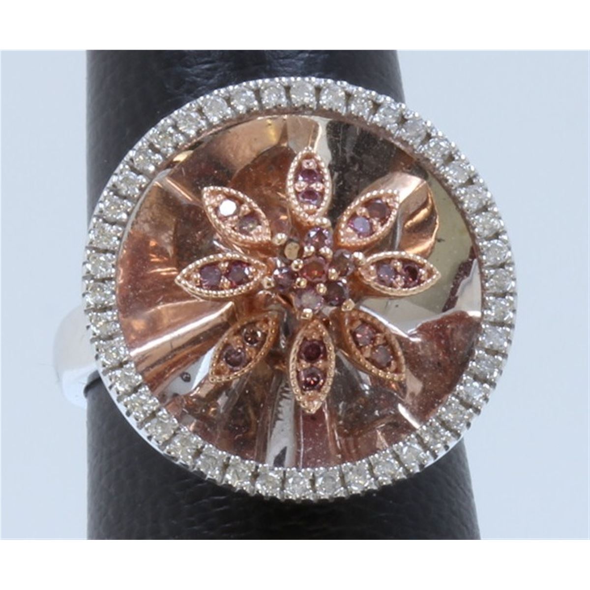 14K WHITE AND ROSE GOLD RING :10.8g/Diamond:0.36ct/Red Diamond:0.24ct