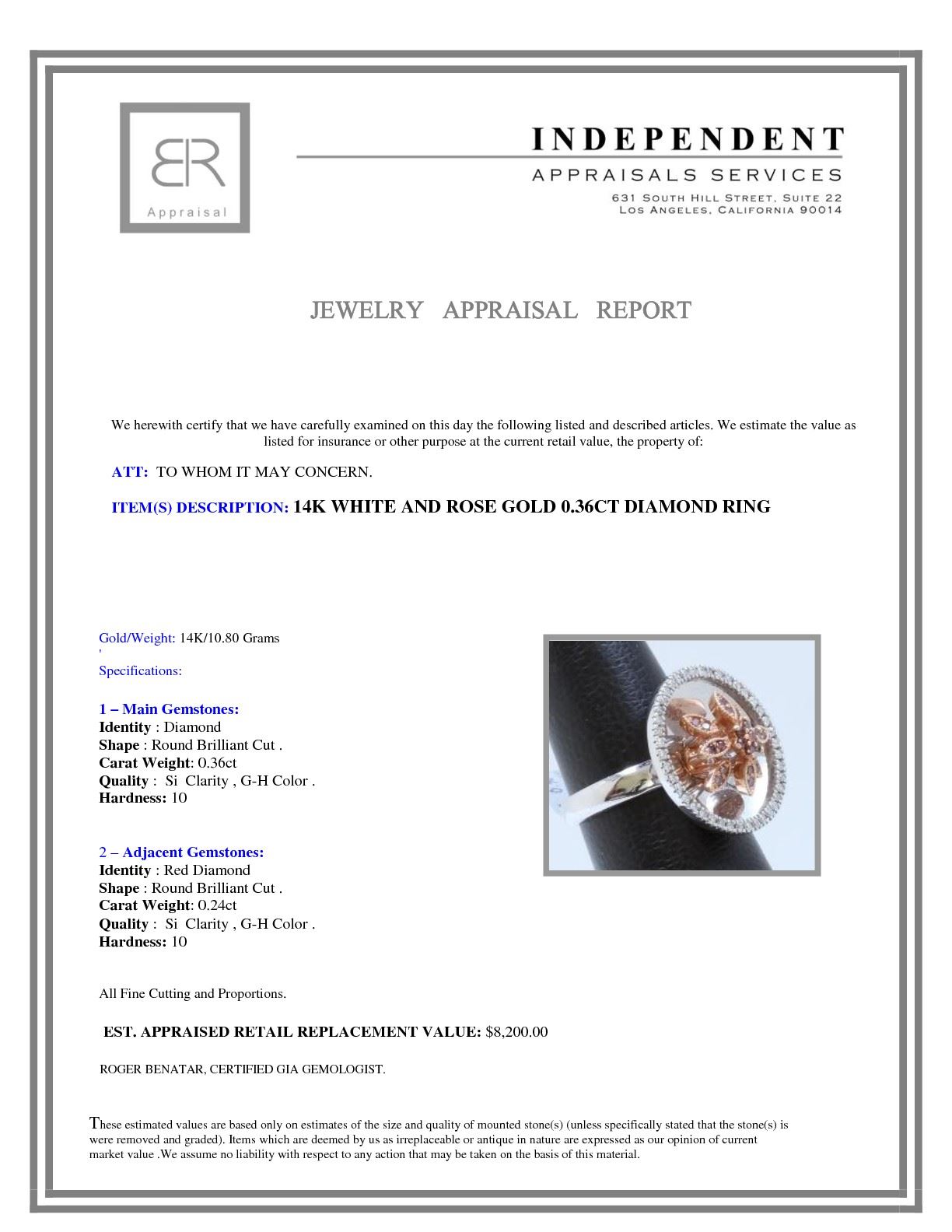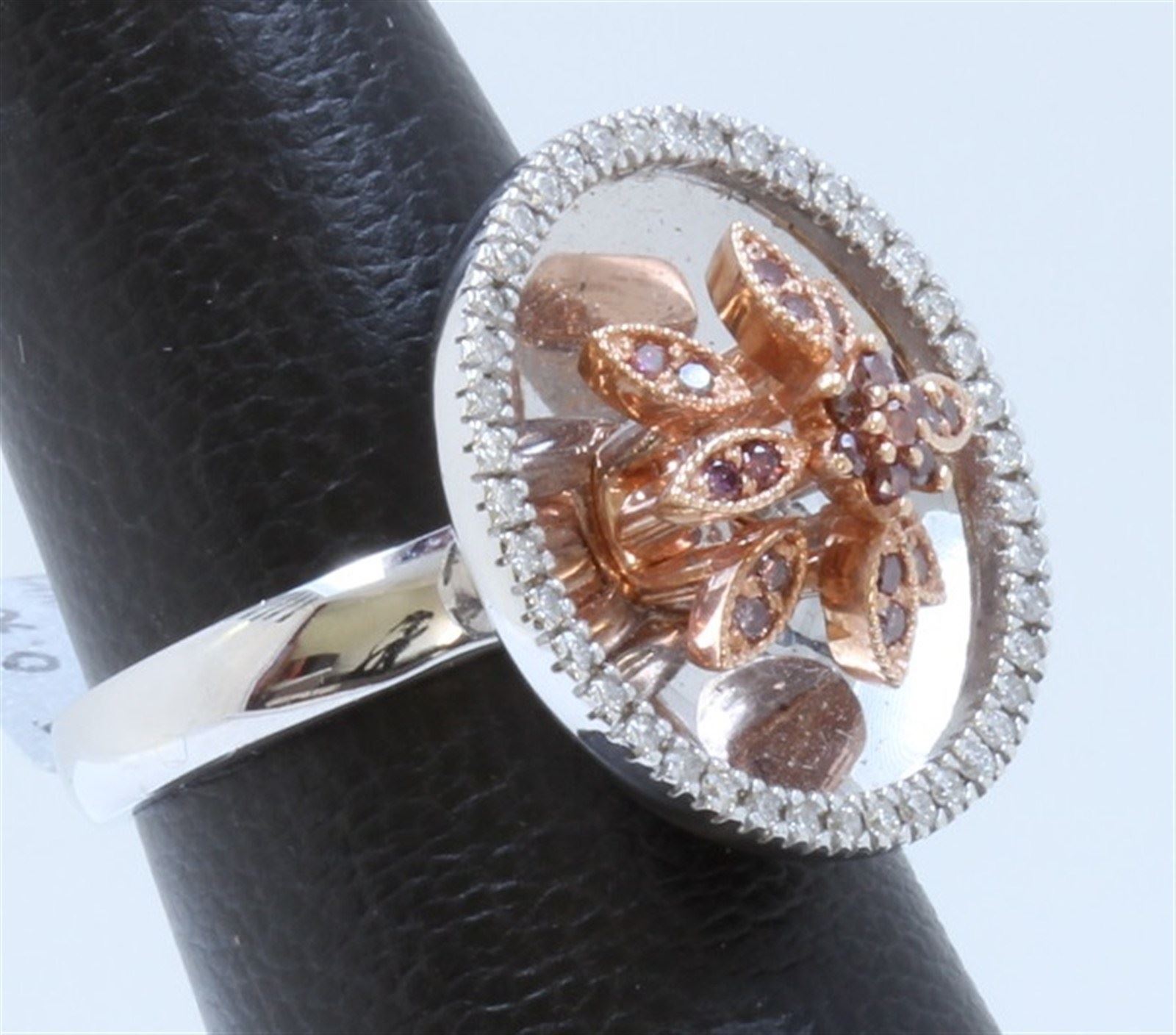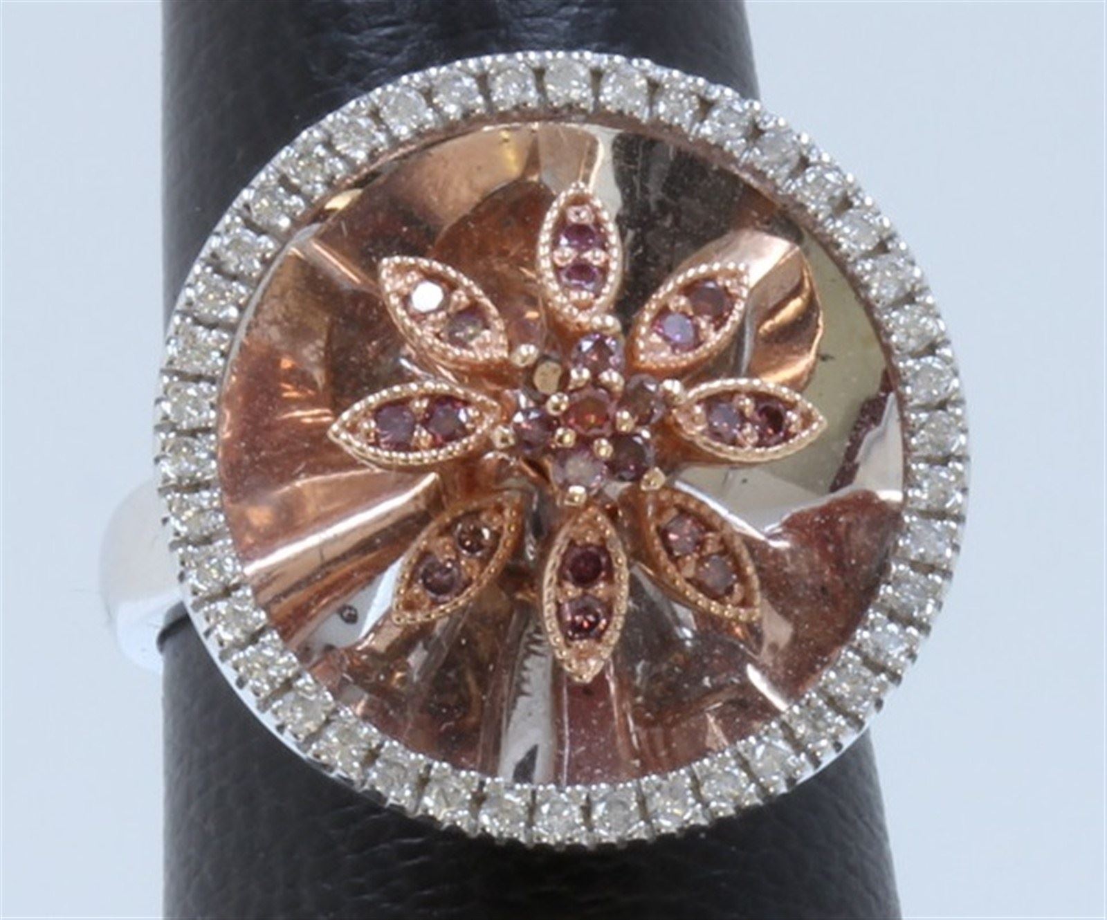 14K WHITE AND ROSE GOLD RING :10.8g/Diamond:0.36ct/Red Diamond:0.24ct