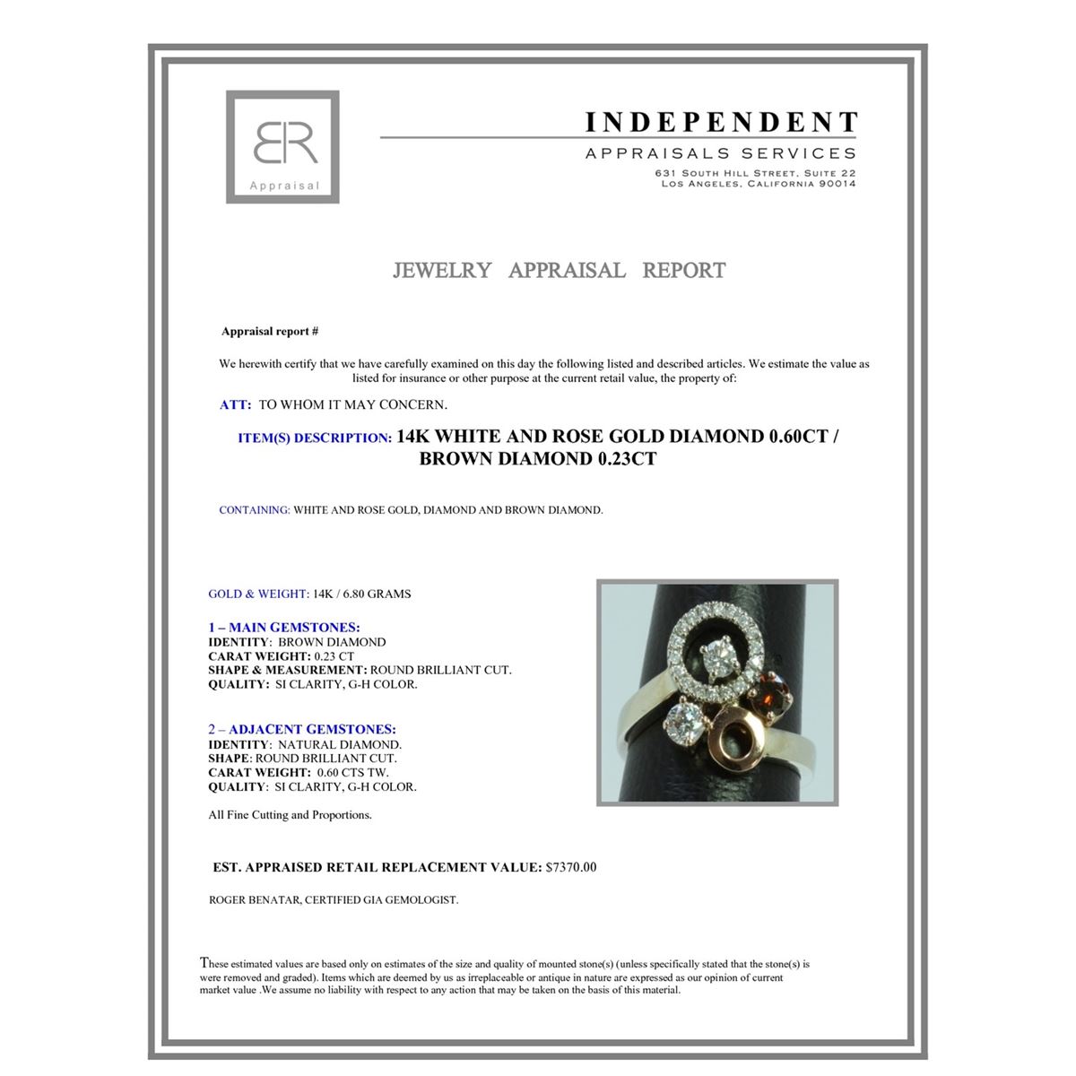 14K WHITE AND ROSE GOLD RING 6.80GRAM DIAMOND 0.60CT / BROWN DIAMOND 0.23CT