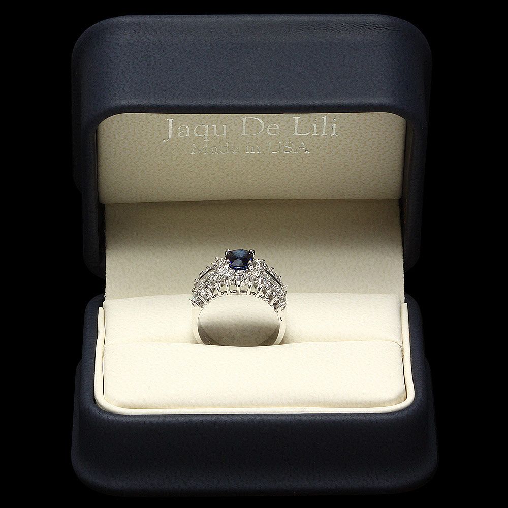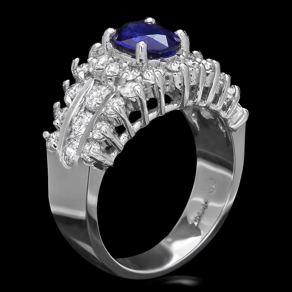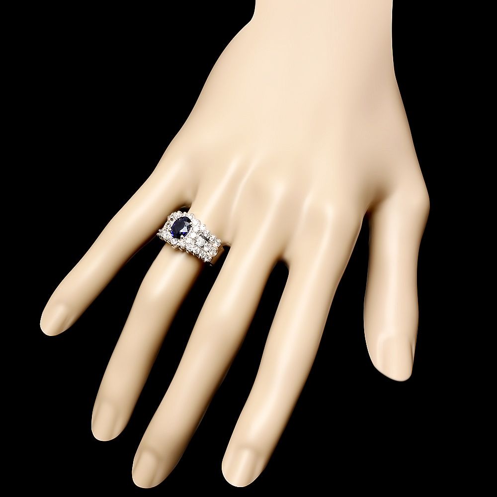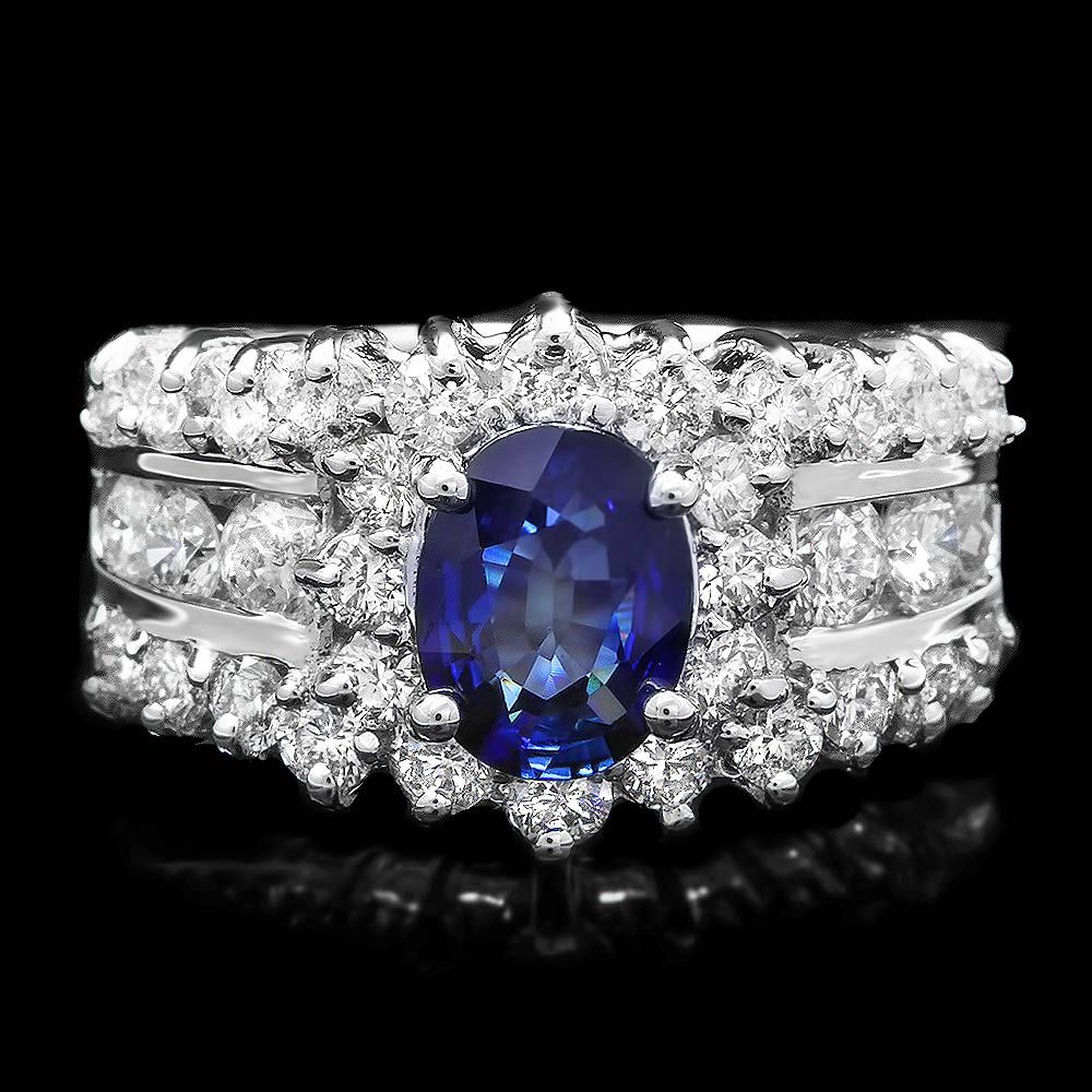 Retail: $8400.00 ****** Metal: 14k Solid White Gold / Size: 7 / Total Item Weight: 7.5 grams / Country Made: USA / / Main Stone: Sapphire / Color: Blue / Carat Total Weight: 1.00 / Treatment: Heating / Clarity: Type 2 / Cut: Very Good / / Secondary Stone: Diamond / Carat Total Weight: 1.55 / Treatment: None / Color Grade: G - H / Clarity: SI1 - SI2 / Cut: Very Good / ****** Ref: JQL-R-4881
