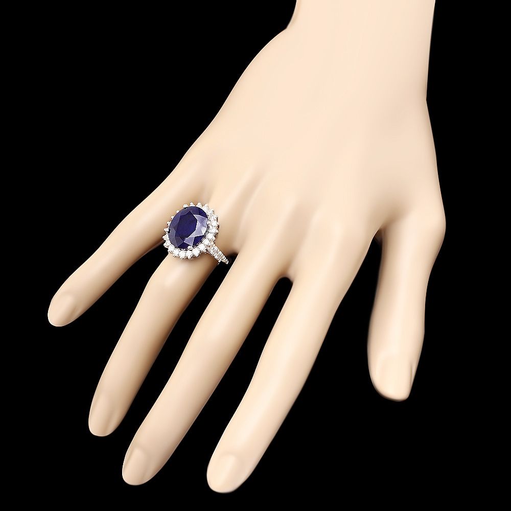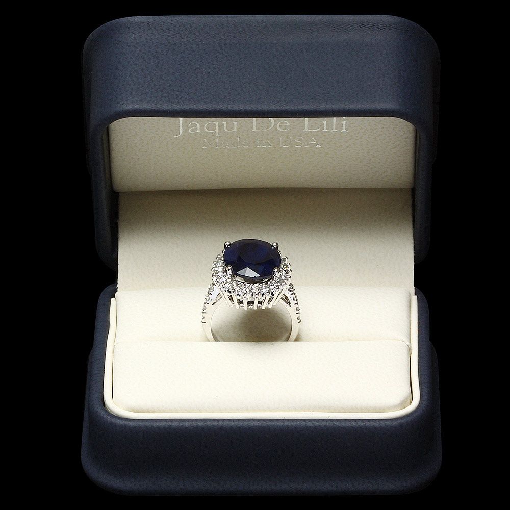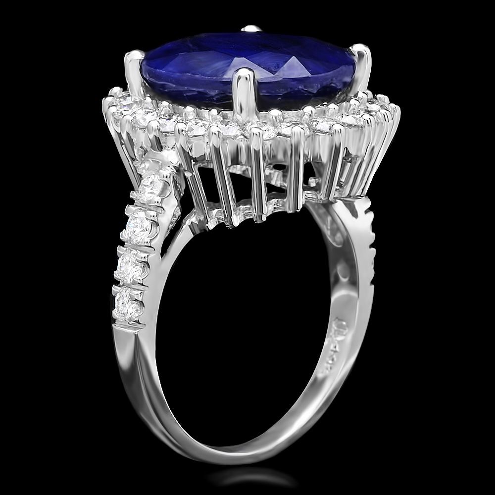 Retail: $8700.00 ****** Metal: 14k Solid White Gold / Size: 7 / Total Item Weight: 8 grams / Country Made: USA / / Main Stone: Sapphire / Color: Blue / Carat Total Weight: 10.00 / Treatment: Heating / Clarity: Type 2 / Cut: Very Good / / Secondary Stone: Diamond / Carat Total Weight: 1.30 / Treatment: None / Color Grade: H - I / Clarity: SI1 - SI2 / Cut: Very Good / ****** Ref: JQL-R-4566