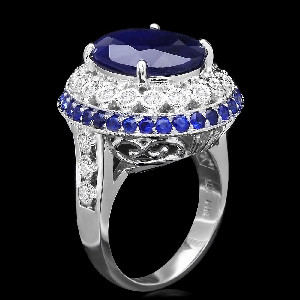 Retail: $8500.00 ****** Metal: 14k Solid White Gold / Size: 7.5 / Total Item Weight: 10.00 grams / Country Made: USA / / Main Stone: Sapphire / Color: Blue / Carat Total Weight: 9.00 / Treatment: Heating / Clarity: Type 2 / Cut: Very Good / / Secondary Stone: Diamond / Carat Total Weight: 0.60 / Treatment: None / Color Grade: H - I / Clarity: SI1 - SI2 / Cut: Very Good / / Side Stone: Sapphire / Color: Blue / Carat Total Weight: 1.30 / Treatment: None / Clarity: Type 2 / Cut: Very Good / ****** Ref: JQL-R-4374