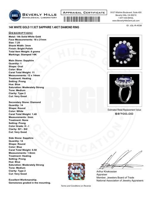 Regarding Appraised Jewelry and Loose Stones - WESTBURY AUCTION GALLERIES sends them out to a third party for Retail Replacement Value Appraisals, which are the most common. These types of evaluations are written for insurance needs. This would be the cost to replace the jewelry with an item of equal quality and kind, considered to be the current market price or the replacement value. This type of appraisal is done to protect you in the event of damage or loss of a valuable item. Our appraisals are conducted by independent 3rd Party appraisal firms that utilizes Certified GIA Gemologist. Appraisals should be used for verification of gemstone and/or metal weight, size, and grade only, not actual value. Appraisal value should be considered for insurance purposes only, not actual value, as price varies greatly from retail locations thru out the world. Items should not be purchased with the expectation to resell for appraisal price, or for profit.