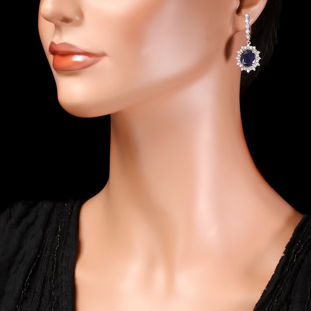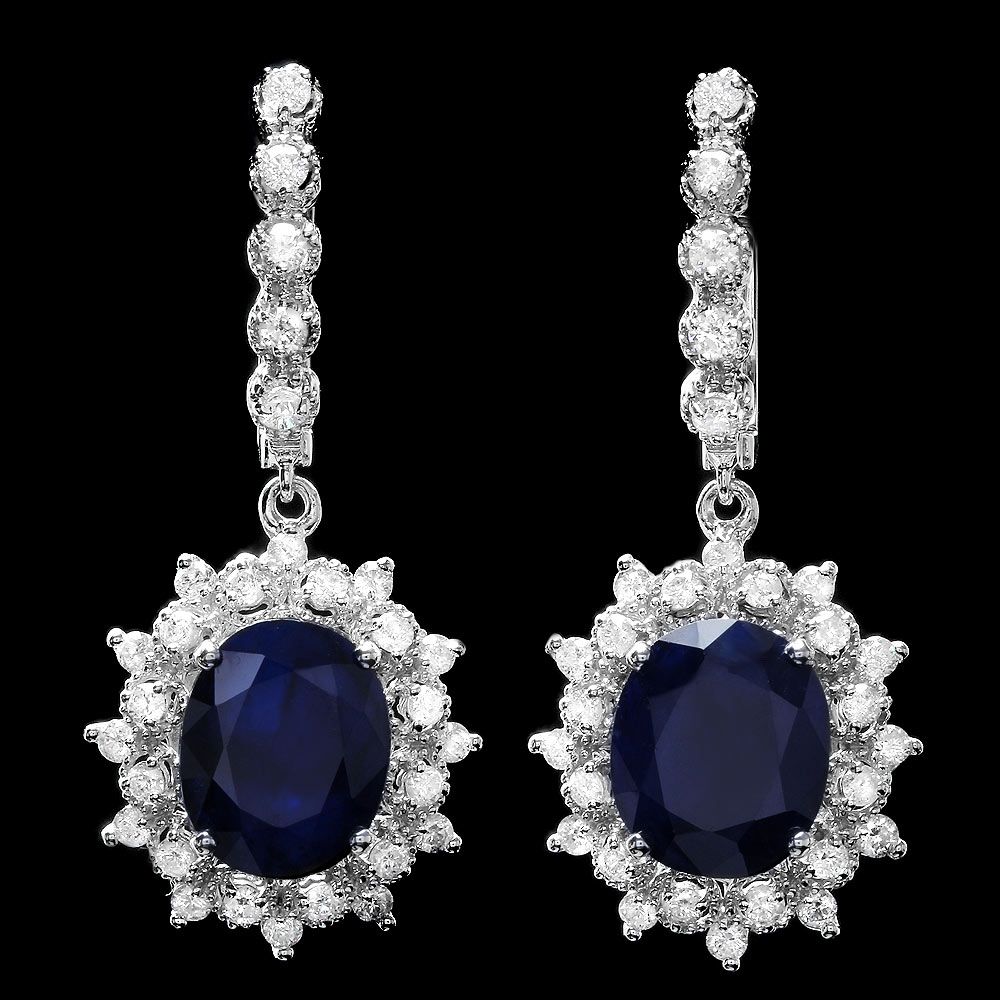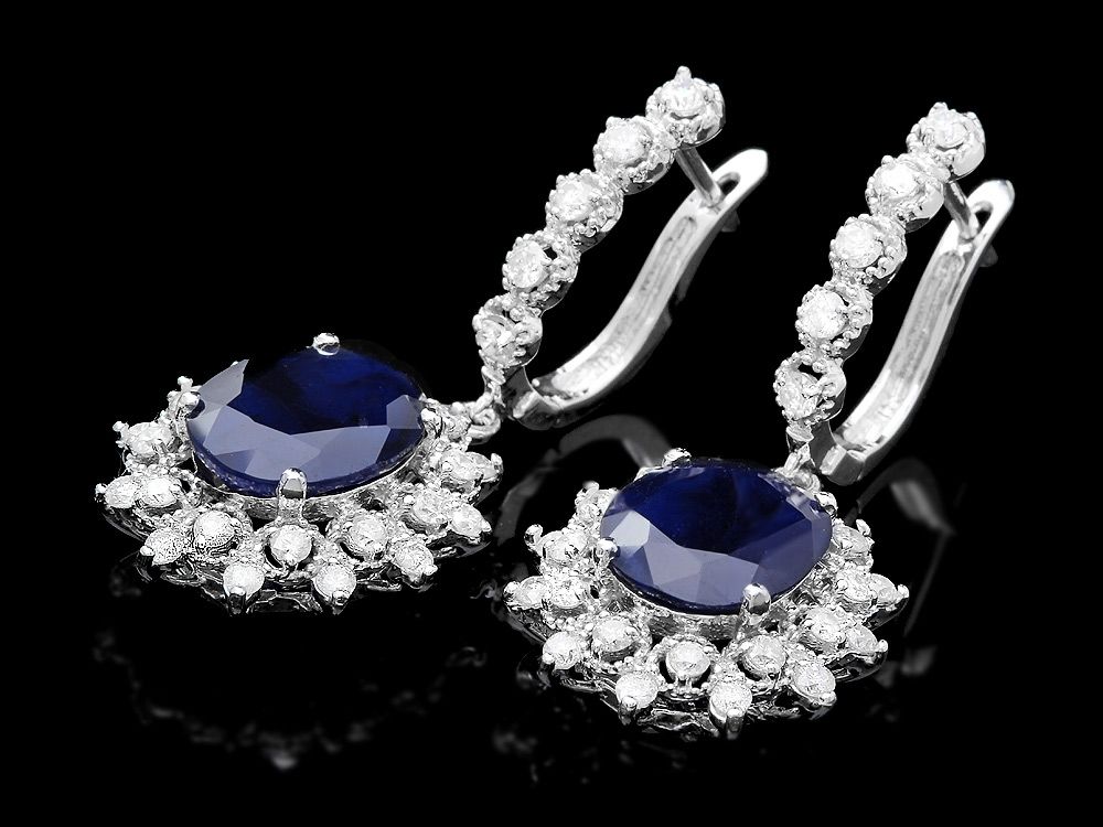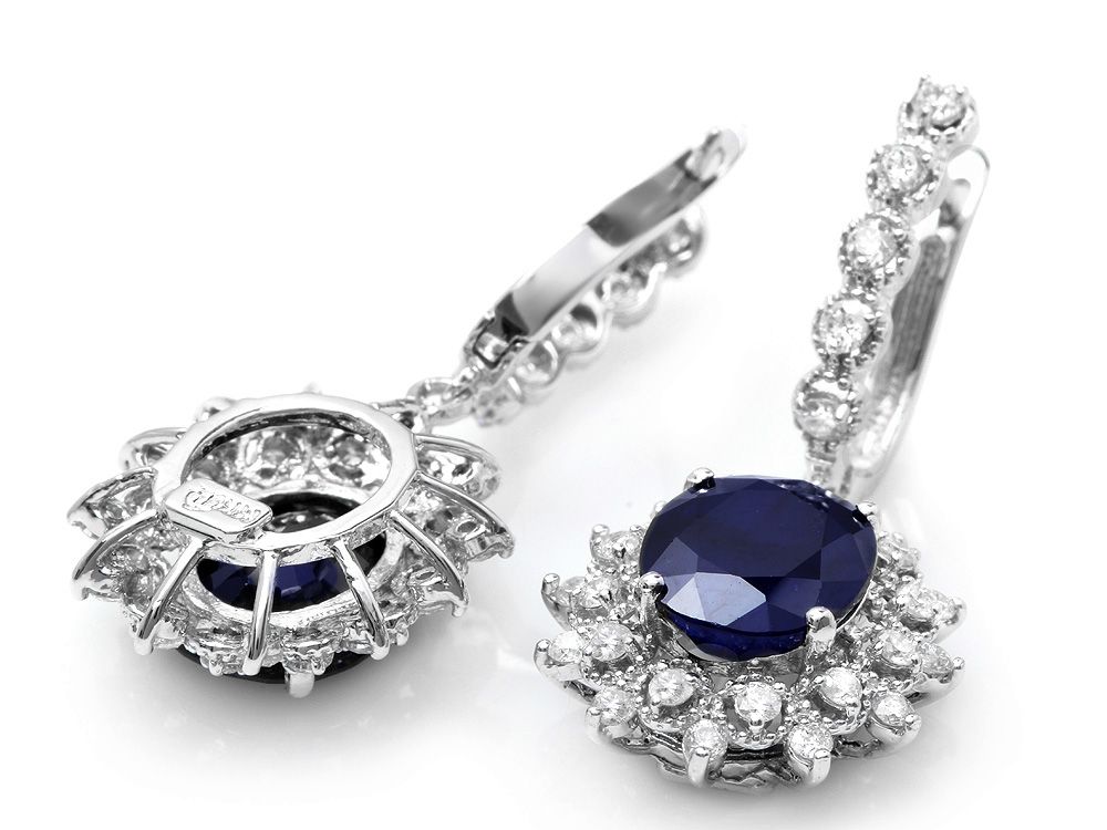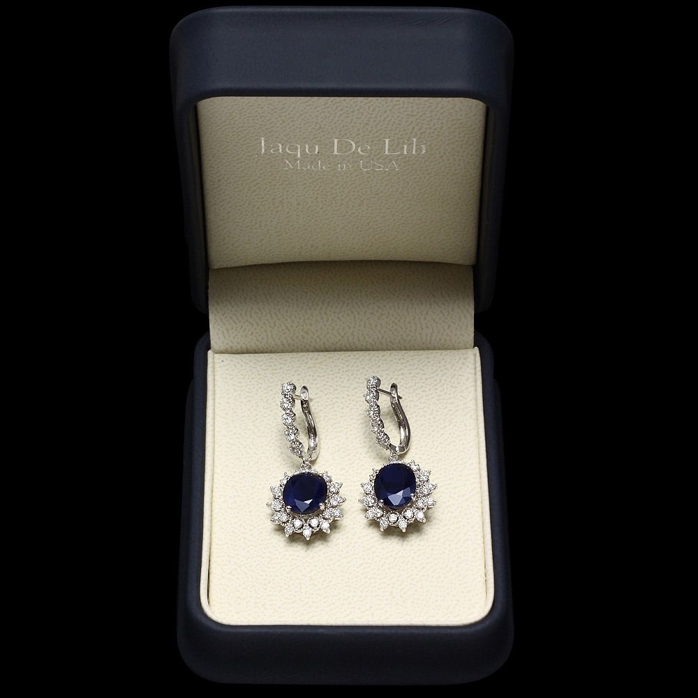 Retail: $13650.00 ****** Metal: 14k Solid White Gold / Total Item Weight: 9.0 grams / Country Made: USA / / Main Stone: Sapphire / Color: Blue / Carat Total Weight: 11.00 / Treatment: Heating / Clarity: Type 2 / Cut: Very Good / / Secondary Stone: Diamond / Carat Total Weight: 1.60 / Treatment: None / Color Grade: H - I / Clarity: SI1 - SI2 / Cut: Very Good / ****** Ref: JQL-ER-5902