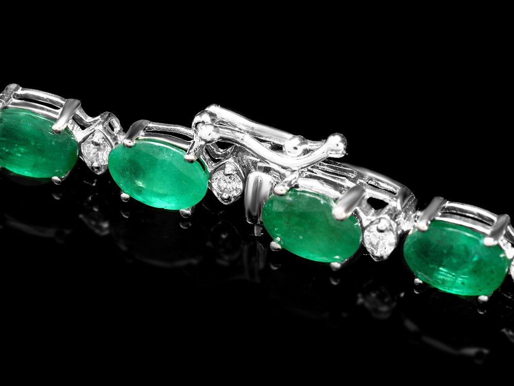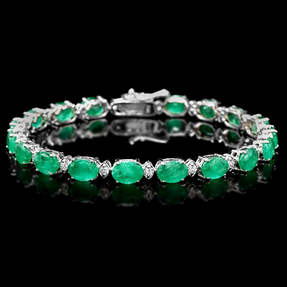 Retail: $19650.00 ****** Metal: 14k Solid White Gold / Size: 7 / Total Item Weight: 10.0 grams / Country Made: USA / / Main Stone: Emerald / Color: Green / Carat Total Weight: 13.50 / Treatment: None / Clarity: Type 2 / Cut: Very Good / / Secondary Stone: Diamond / Carat Total Weight: 0.75 / Treatment: None / Color Grade: H - I / Clarity: SI1 - SI2 / Cut: Very Good / ****** Ref: JQL-BR-5924
