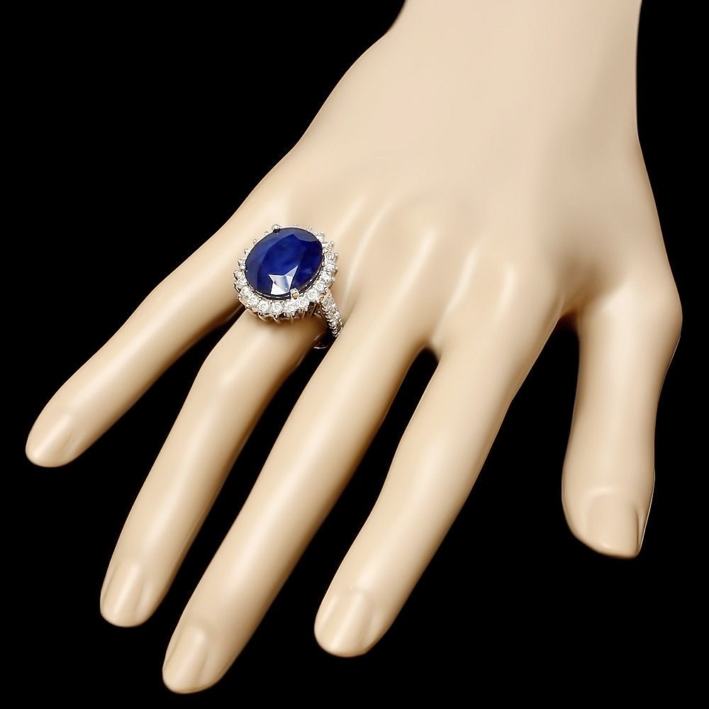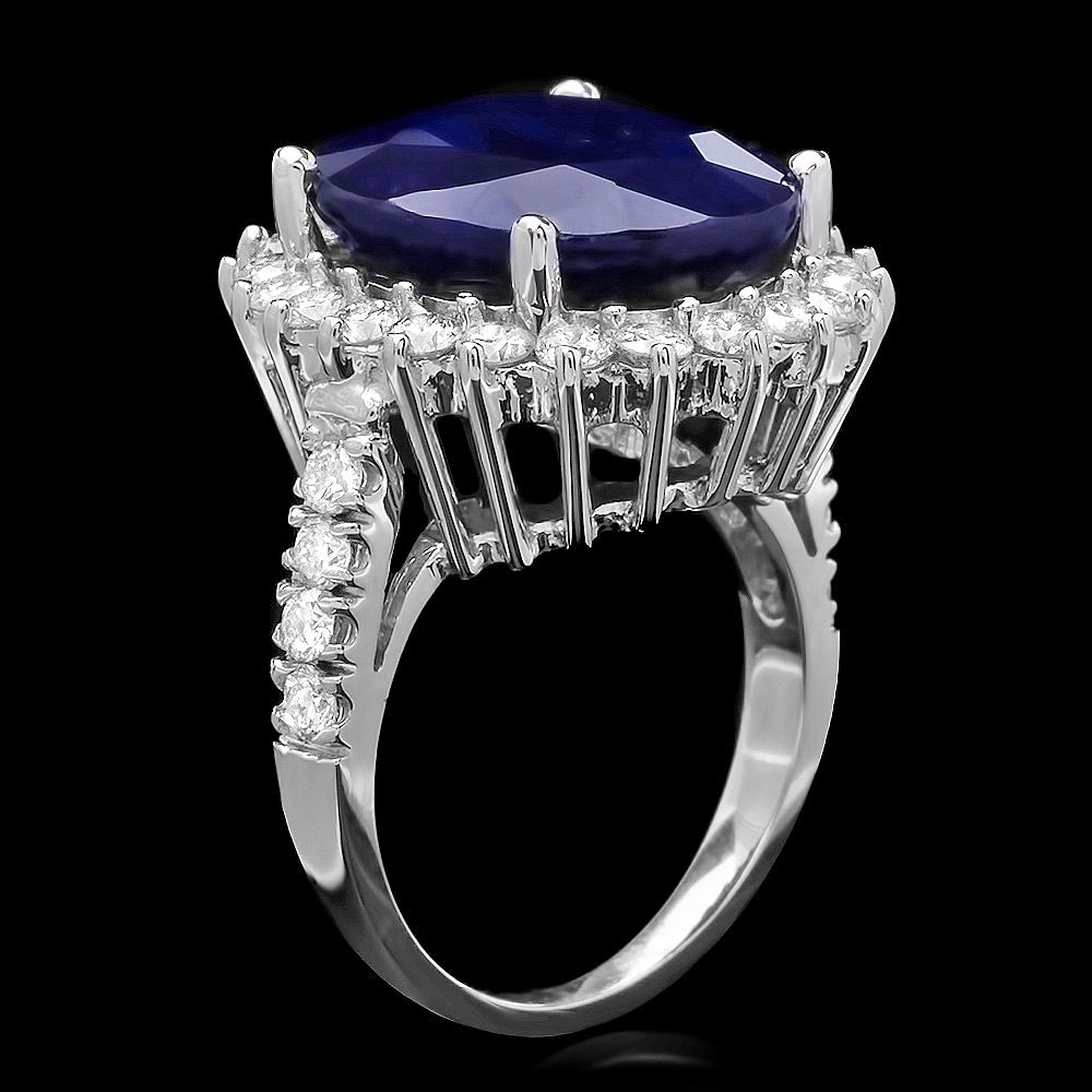 Retail: $10500.00 ****** Metal: 14k Solid White Gold / Size: 7.5 / Total Item Weight: 10.1 grams / Country Made: USA / / Main Stone: Sapphire / Color: Blue / Carat Total Weight: 14.20 / Treatment: Heating / Clarity: Type 2 / Cut: Very Good / / Secondary Stone: Diamond / Carat Total Weight: 1.59 / Treatment: None / Color Grade: H - I / Clarity: SI1 - SI2 / Cut: Very Good / ****** Ref: JQL-R-4134