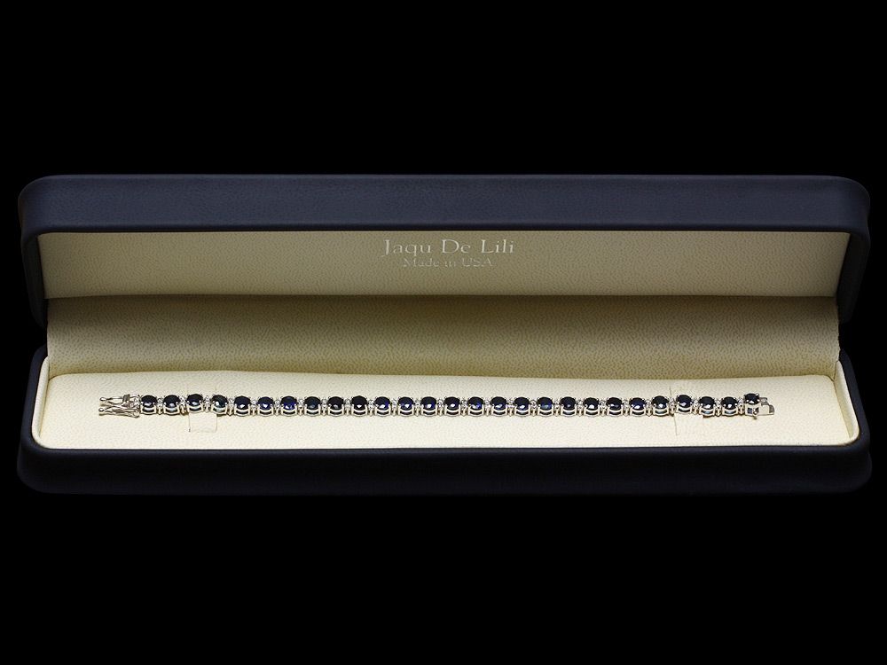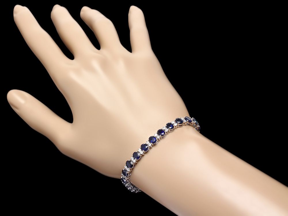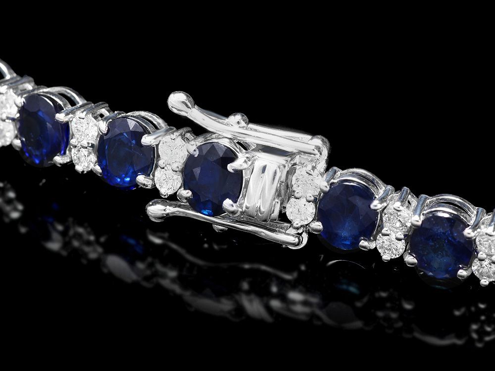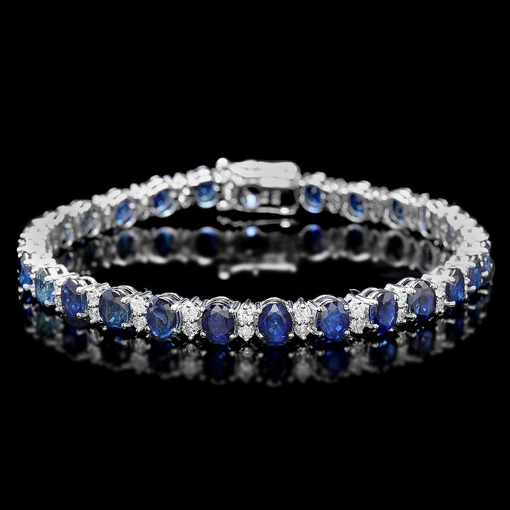 Retail: $21750.00 ****** Metal: 14k Solid White Gold / Size: 7 / Total Item Weight: 13.5 grams / Country Made: USA / / Main Stone: Sapphire / Color: Blue / Carat Total Weight: 14.00 / Treatment: Diffusion / Clarity: Type 2 / Cut: Very Good / / Secondary Stone: Diamond / Carat Total Weight: 1.80 / Treatment: None / Color Grade: G - H / Clarity: SI1 - SI2 / Cut: Very Good / ****** Ref: JQL-BR-5925