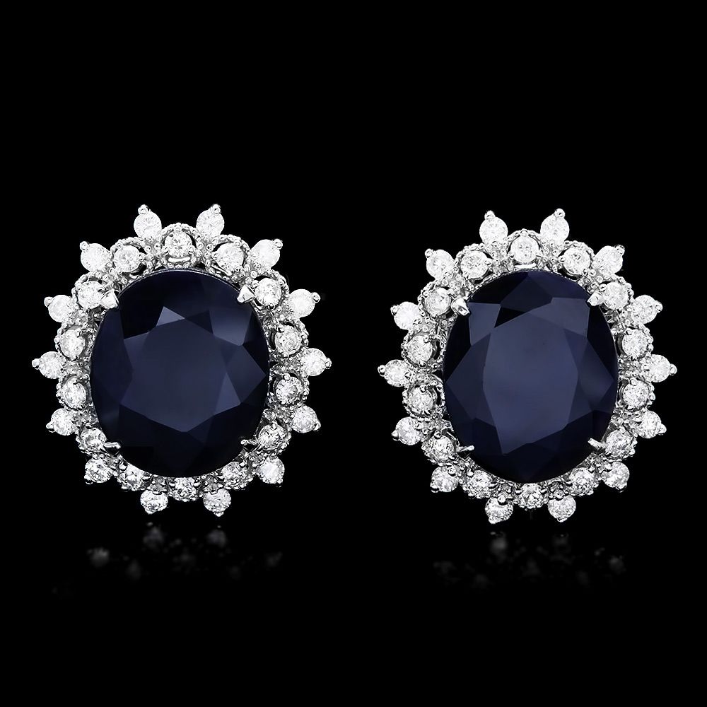 Retail: $8300.00 ****** Metal: 14k Solid White Gold / Total Item Weight: 9.0 grams / Country Made: USA / / Main Stone: Sapphire / Color: Blue / Carat Total Weight: 15.00 / Treatment: Heating / Clarity: Type 2 / Cut: Very Good / / Secondary Stone: Diamond / Carat Total Weight: 1.40 / Treatment: None / Color Grade: H - I / Clarity: SI1 - SI2 / Cut: Very Good / ****** Ref: JQL-ER-7205