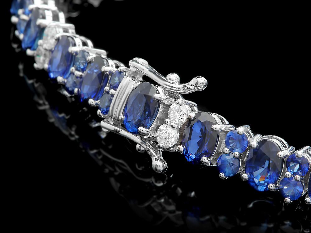 Retail: $19250.00 ****** Metal: 14k Solid White Gold / Size: 7 / Total Item Weight: 16.0 grams / Country Made: USA / / Main Stone: Sapphire / Color: Blue / Carat Total Weight: 14.50 / Treatment: Diffusion / Clarity: Type 2 / Cut: Very Good / / Secondary Stone: Diamond / Carat Total Weight: 1.35 / Treatment: None / Color Grade: H - I / Clarity: SI1 - SI2 / Cut: Very Good / / Side Stone: Sapphire / Color: Blue / Carat Total Weight: 5.00 / Treatment: Diffusion / Clarity: Type 2 / Cut: Very Good / ****** Ref: JQL-BR-5613