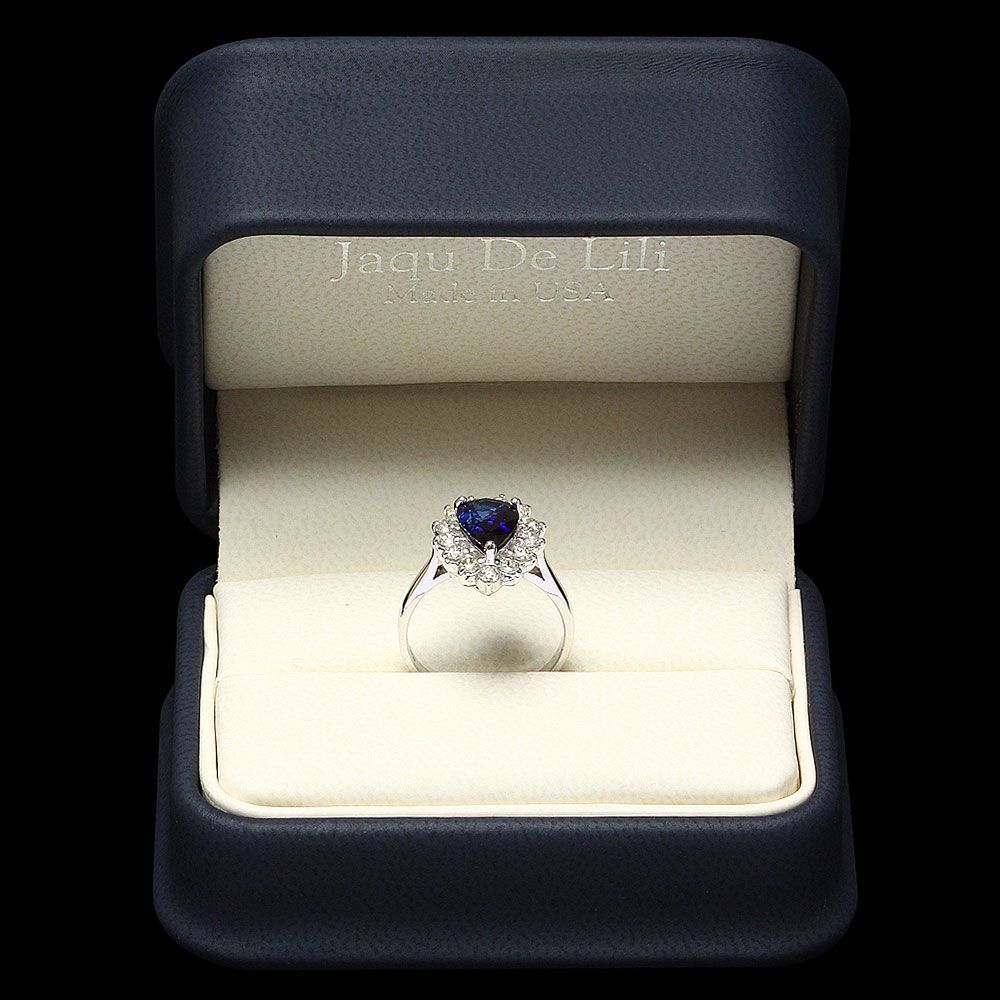 Retail: $7000.00 ****** Metal: 14k Solid White Gold / Size: 7 / Total Item Weight: 4.3 grams / Country Made: USA / / Main Stone: Sapphire / Color: Blue / Carat Total Weight: 2.07 / Treatment: Heating / Clarity: Type 2 / Cut: Very Good / / Secondary Stone: Diamond / Carat Total Weight: 0.75 / Treatment: None / Color Grade: G - H / Clarity: SI1 - SI2 / Cut: Very Good / ****** Ref: JQL-R-4242