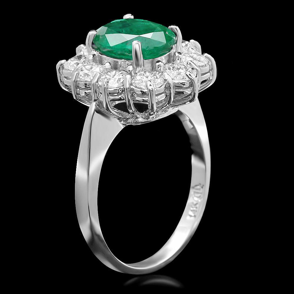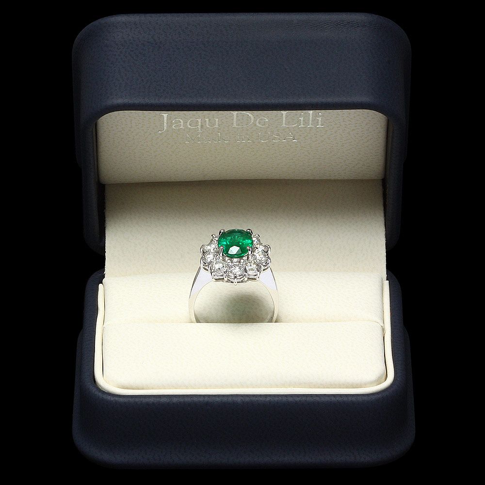 Retail: $18600.00 ****** Metal: 14k Solid White Gold / Size: 8 / Total Item Weight: 6 grams / Country Made: USA / / Main Stone: Emerald / Color: Green / Carat Total Weight: 2.30 / Treatment: None / Clarity: Type 2 / Cut: Very Good / / Secondary Stone: Diamond / Carat Total Weight: 1.70 / Treatment: None / Color Grade: G - H / Clarity: SI1 - SI2 / Cut: Very Good / ****** Ref: JQL-R-4550
