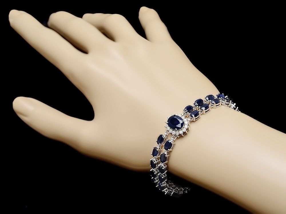 Retail: $19200.00 ****** Metal: 14k Solid White Gold / Size: 7.5 / Total Item Weight: 23.0 grams / Country Made: USA / / Main Stone: Sapphire / Color: Blue / Carat Total Weight: 3.00 / Treatment: Heating / Clarity: Type 2 / Cut: Very Good / / Secondary Stone: Diamond / Carat Total Weight: 1.85 / Treatment: None / Color Grade: H - I / Clarity: SI1 - SI2 / Cut: Very Good / / Side Stone: Sapphire / Color: Blue / Carat Total Weight: 19.00 / Treatment: Diffusion / Clarity: Type 2 / Cut: Very Good / ****** Ref: JQL-BR-7830