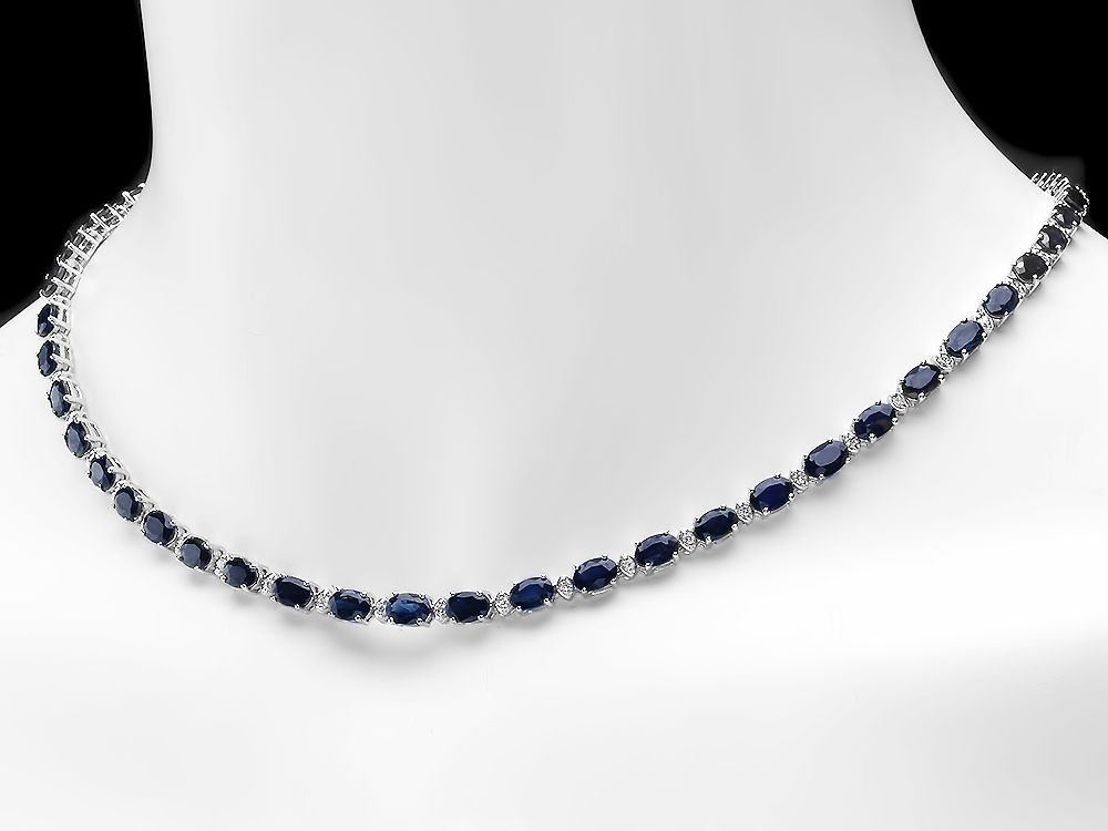 Retail: $24760.00 ****** Metal: 14k Solid White Gold / Size: 17.5 / Total Item Weight: 20.5 grams / Country Made: USA / / Main Stone: Sapphire / Color: Blue / Carat Total Weight: 26.50 / Treatment: None / Clarity: Type 2 / Cut: Very Good / / Secondary Stone: Diamond / Carat Total Weight: 1.00 / Treatment: None / Color Grade: G - H / Clarity: SI1 - SI2 / Cut: Very Good / ****** Ref: JQL-N-5708