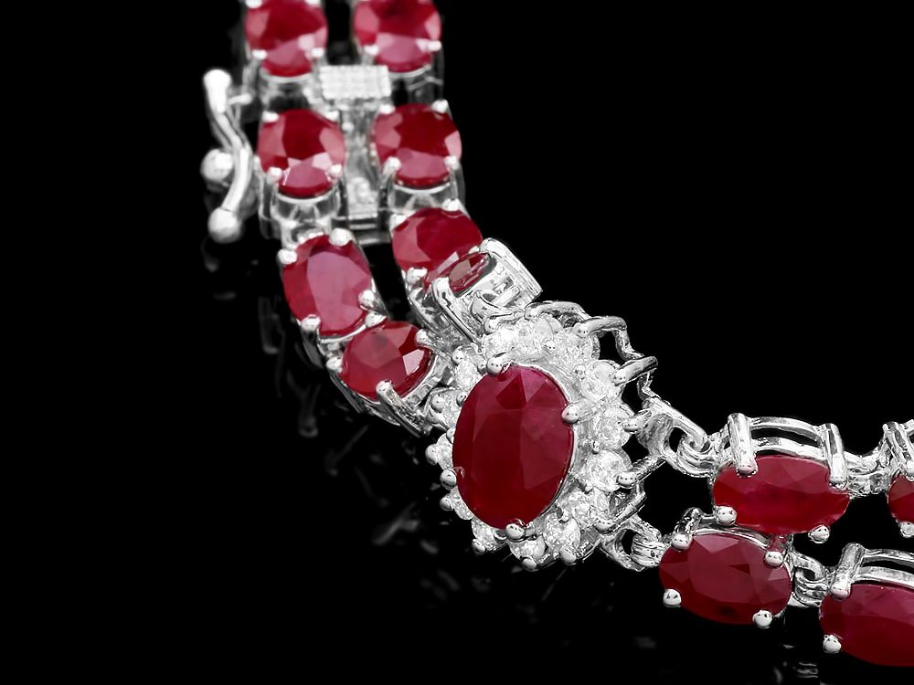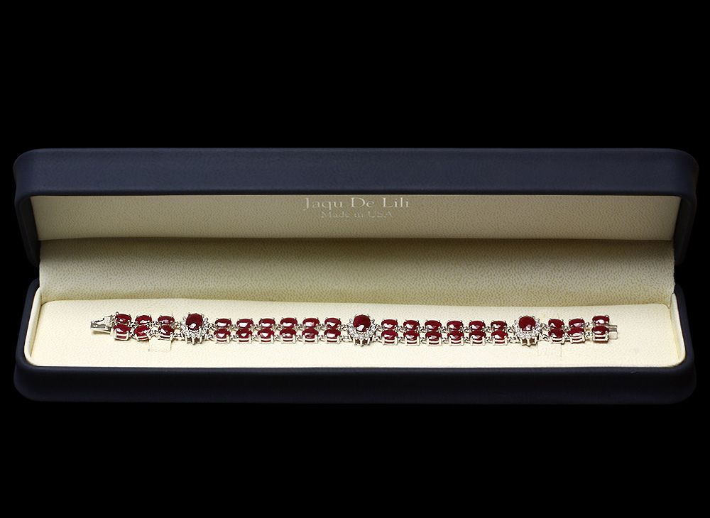Retail: $18400.00 ****** Metal: 14k Solid White Gold / Size: 7 / Total Item Weight: 20.0 grams / Country Made: USA / / Main Stone: Ruby / Color: Red / Carat Total Weight: 4.50 / Treatment: None / Clarity: Type 2 / Cut: Very Good / / Secondary Stone: Diamond / Carat Total Weight: 1.30 / Treatment: None / Color Grade: H - I / Clarity: SI1 - SI2 / Cut: Very Good / / Side Stone: Ruby / Color: Red / Carat Total Weight: 22.00 / Treatment: None / Clarity: Type 2 / Cut: Very Good / ****** Ref: JQL-BR-5505