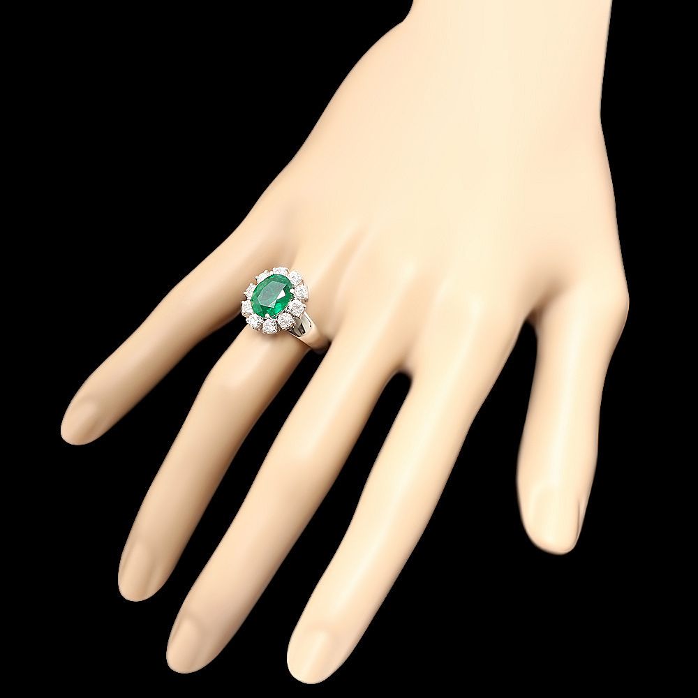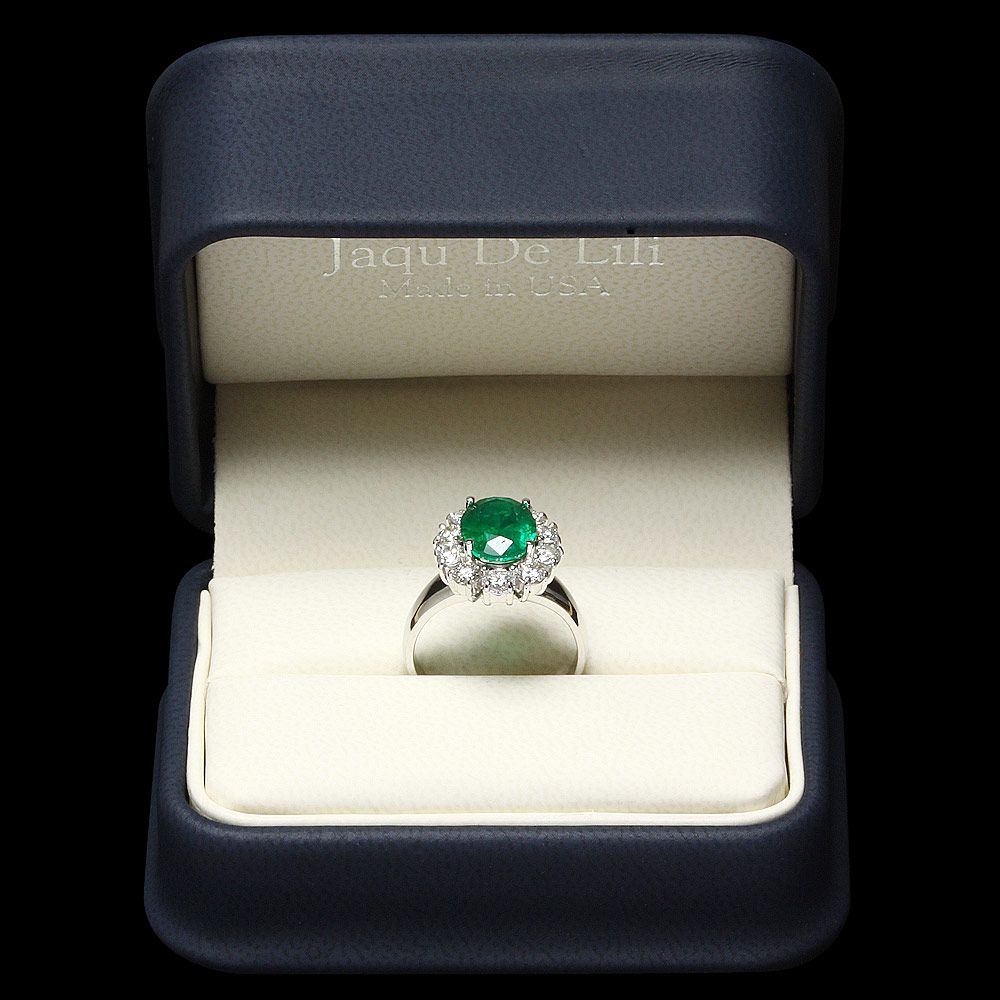 Retail: $13700.00 ****** Metal: 14k Solid White Gold / Size: 8 / Total Item Weight: 6 grams / Country Made: USA / / Main Stone: Emerald / Color: Green / Carat Total Weight: 3.00 / Treatment: None / Clarity: Type 2 / Cut: Very Good / / Secondary Stone: Diamond / Carat Total Weight: 1.10 / Treatment: None / Color Grade: G - H / Clarity: SI1 - SI2 / Cut: Very Good / ****** Ref: JQL-R-4575