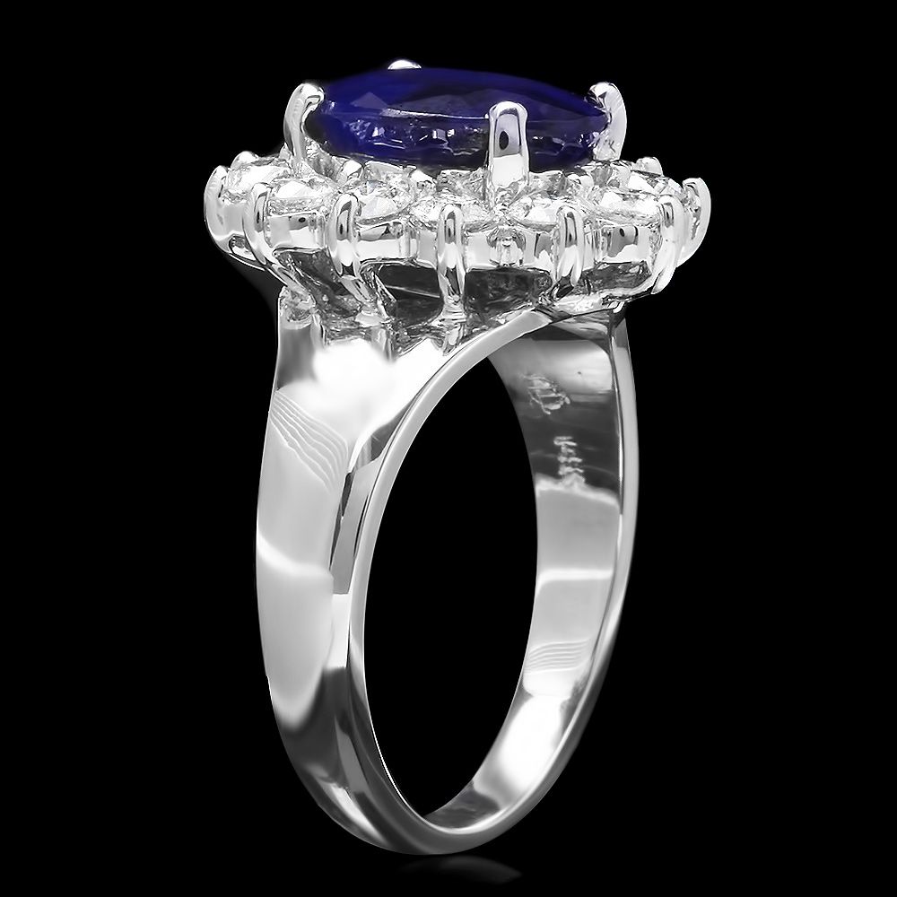 Retail: $5800.00 ****** Metal: 14k Solid White Gold / Size: 7 / Total Item Weight: 6.5 grams / Country Made: USA / / Main Stone: Sapphire / Color: Blue / Carat Total Weight: 3.50 / Treatment: Heating / Clarity: Type 2 / Cut: Very Good / / Secondary Stone: Diamond / Carat Total Weight: 1.00 / Treatment: None / Color Grade: G - H / Clarity: SI1 - SI2 / Cut: Very Good / ****** Ref: JQL-R-4915