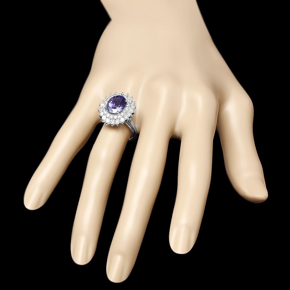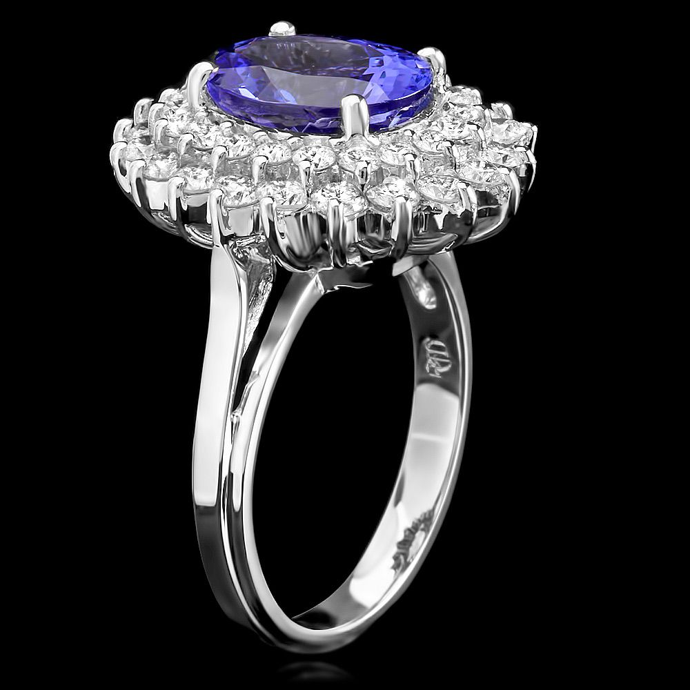 Retail: $12900.00 ****** Metal: 14k Solid White Gold / Size: 7 / Total Item Weight: 6.8 grams / Country Made: USA / / Main Stone: Tanzanite / Color: Purple / Carat Total Weight: 3.77 / Treatment: None / Clarity: Type 2 / Cut: Very Good / / Secondary Stone: Diamond / Carat Total Weight: 1.58 / Treatment: None / Color Grade: G - H / Clarity: SI1 - SI2 / Cut: Very Good / ****** Ref: JQL-R-4004