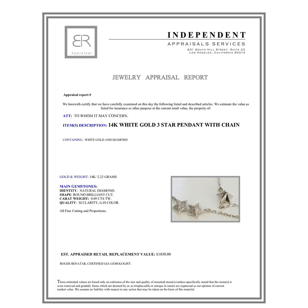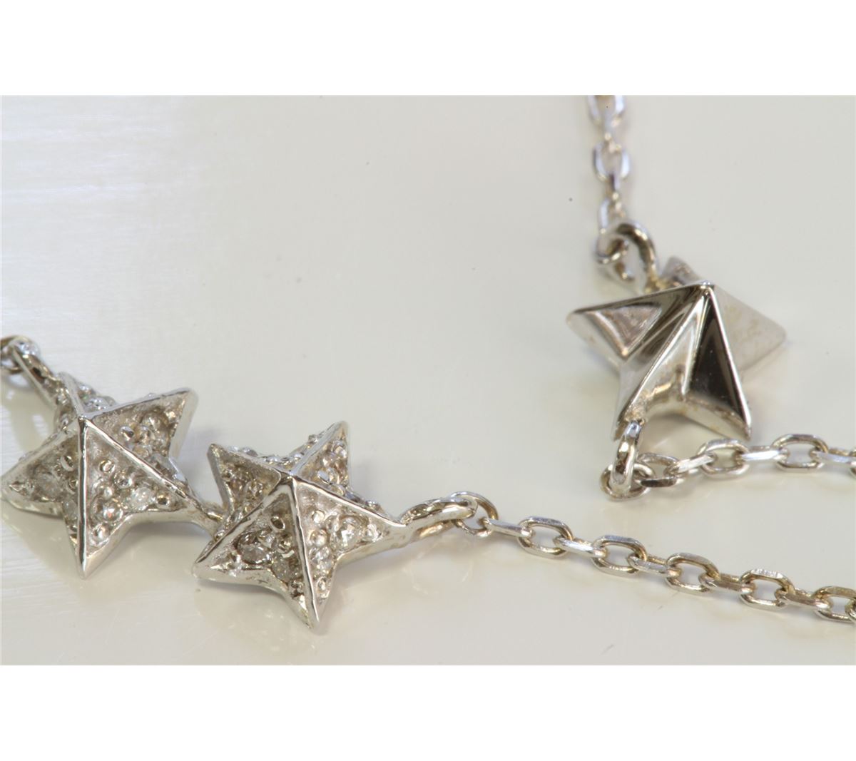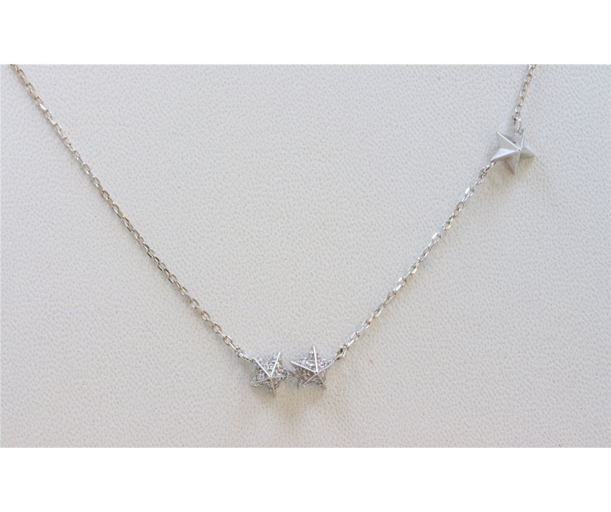 14K WHITE GOLD 3 STAR PENDANT WITH CHAIN :2.22g/Diamond:0.09ct