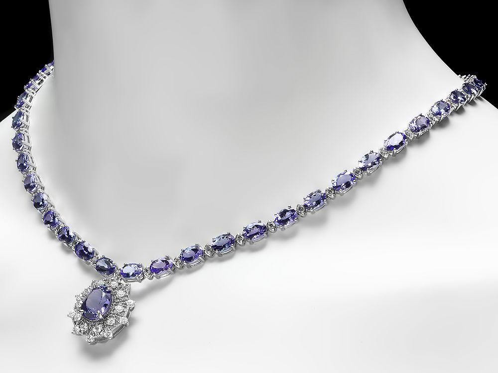 Retail: $36400.00 ****** Metal: 14k Solid White Gold / Size: 17.25 / Total Item Weight: 28 grams / Country Made: USA / / Main Stone: Tanzanite / Color: Blue / Carat Total Weight: 3.50 / Treatment: None / Clarity: Type 2 / Cut: Very Good / / Secondary Stone: Diamond / Carat Total Weight: 2.80 / Treatment: None / Color Grade: H - I / Clarity: SI1 - SI2 / Cut: Very Good / / Side Stone: Tanzanite / Color: Black / Carat Total Weight: 31.00 / Treatment: None / Clarity: Type 2 / Cut: Very Good / ****** Ref: JQL-N-4797