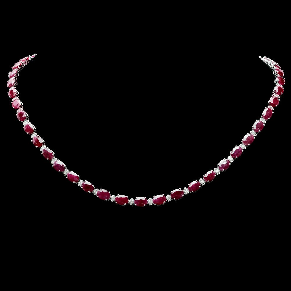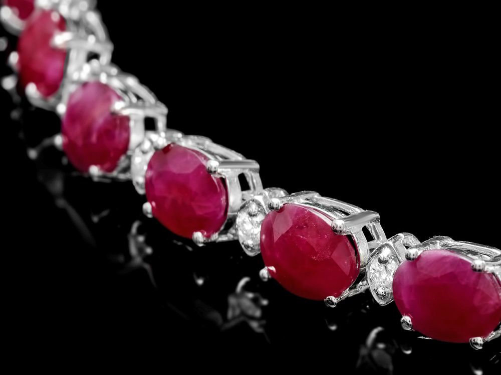 Retail: $26000.00 ****** Metal: 14k Solid White Gold / Size: 17.5 / Total Item Weight: 24.5 grams / Country Made: USA / / Main Stone: Ruby / Color: Red / Carat Total Weight: 37.00 / Treatment: None / Clarity: Type 2 / Cut: Very Good / / Secondary Stone: Diamond / Carat Total Weight: 1.70 / Treatment: None / Color Grade: H - I / Clarity: SI1 - SI2 / Cut: Very Good / ****** Ref: JQL-N-7839