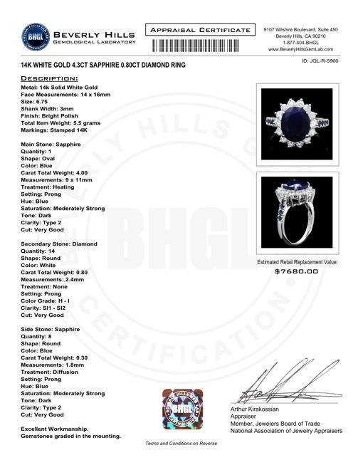 Regarding Appraised Jewelry and Loose Stones - WESTBURY AUCTION GALLERIES sends them out to a third party for Retail Replacement Value Appraisals, which are the most common. These types of evaluations are written for insurance needs. This would be the cost to replace the jewelry with an item of equal quality and kind, considered to be the current market price or the replacement value. This type of appraisal is done to protect you in the event of damage or loss of a valuable item. Our appraisals are conducted by independent 3rd Party appraisal firms that utilizes Certified GIA Gemologist. Appraisals should be used for verification of gemstone and/or metal weight, size, and grade only, not actual value. Appraisal value should be considered for insurance purposes only, not actual value, as price varies greatly from retail locations thru out the world. Items should not be purchased with the expectation to resell for appraisal price, or for profit.