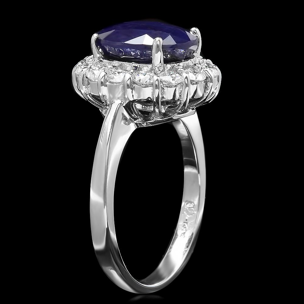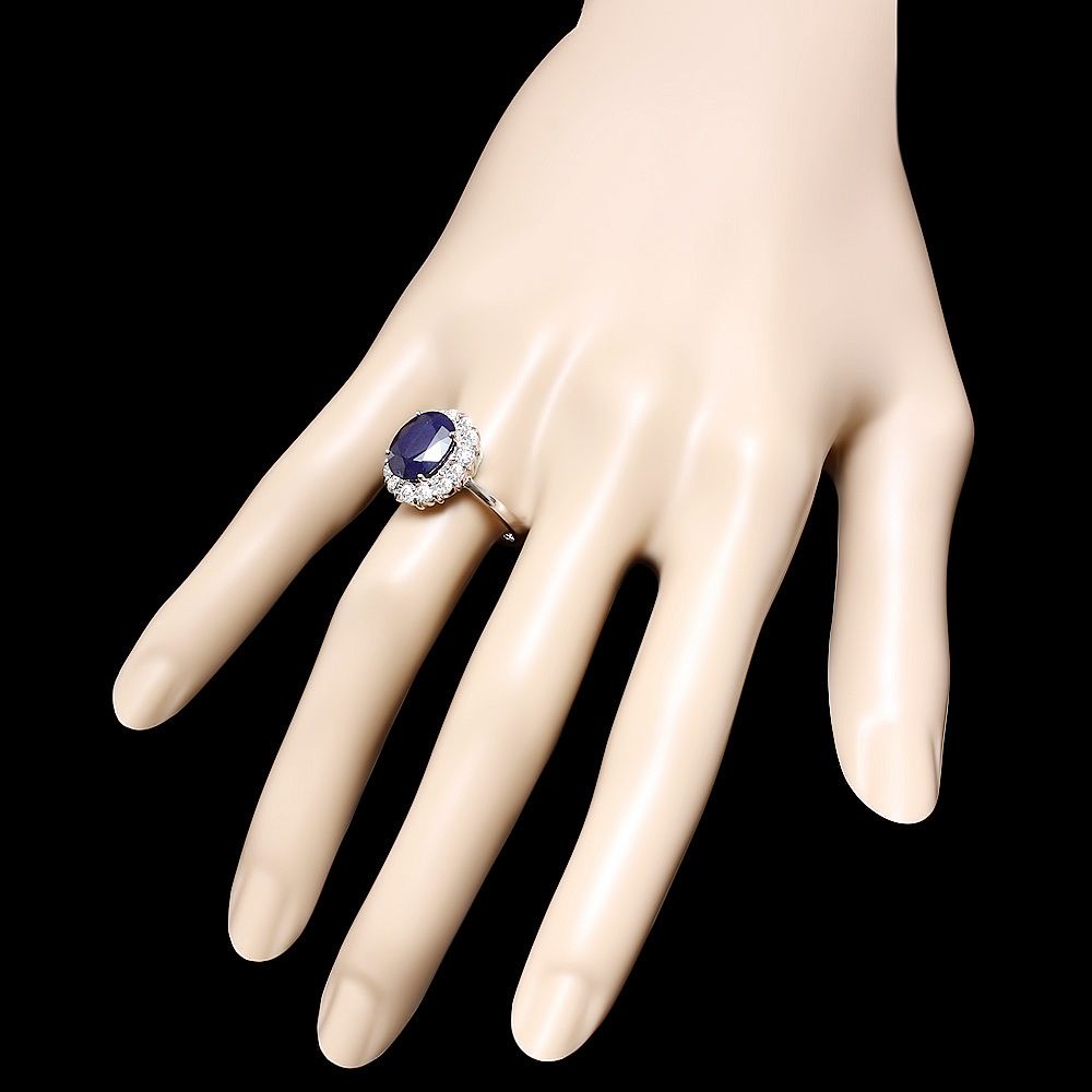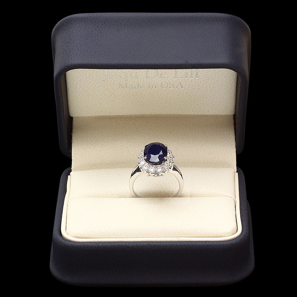 Retail: $5900.00 ****** Metal: 14k Solid White Gold / Size: 7.25 / Total Item Weight: 5.5 grams / Country Made: USA / / Main Stone: Sapphire / Color: Blue / Carat Total Weight: 5.00 / Treatment: Heating / Clarity: Type 2 / Cut: Very Good / / Secondary Stone: Diamond / Carat Total Weight: 1.00 / Treatment: None / Color Grade: H - I / Clarity: SI1 - SI2 / Cut: Very Good / ****** Ref: JQL-R-4908