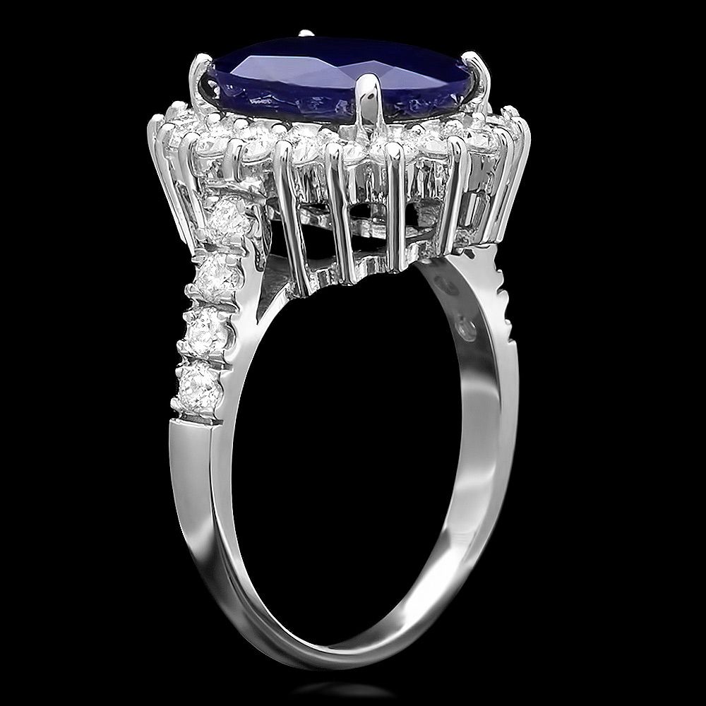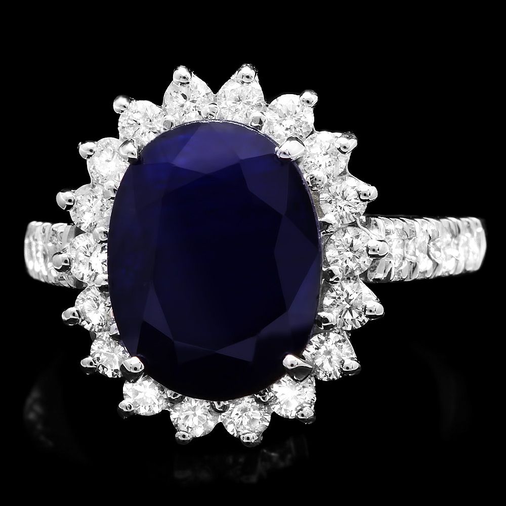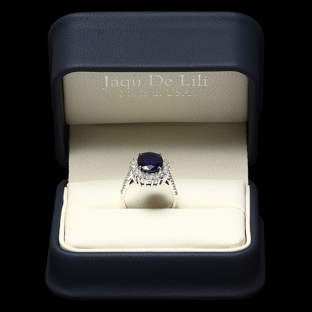 Retail: $6500.00 ****** Metal: 14k Solid White Gold / Size: 7.25 / Total Item Weight: 5.5 grams / Country Made: USA / / Main Stone: Sapphire / Color: Blue / Carat Total Weight: 5.00 / Treatment: Heating / Clarity: Type 2 / Cut: Very Good / / Secondary Stone: Diamond / Carat Total Weight: 1.00 / Treatment: None / Color Grade: G - H / Clarity: SI1 - SI2 / Cut: Very Good / ****** Ref: JQL-R-4423