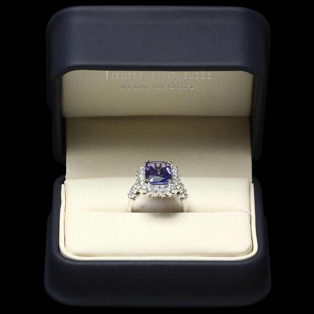Retail: $14300.00 ****** Metal: 14k Solid White Gold / Size: 7 / Total Item Weight: 6.0 grams / Country Made: USA / / Main Stone: Tanzanite / Color: Purple / Carat Total Weight: 5.00 / Treatment: Heating / Clarity: Type 2 / Cut: Very Good / / Secondary Stone: Diamond / Carat Total Weight: 1.20 / Treatment: None / Color Grade: H - I / Clarity: SI1 - SI2 / Cut: Very Good / ****** Ref: JQL-R-5490
