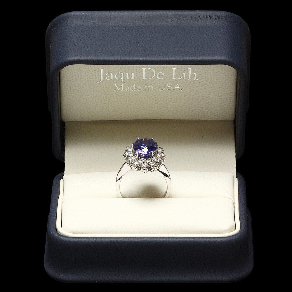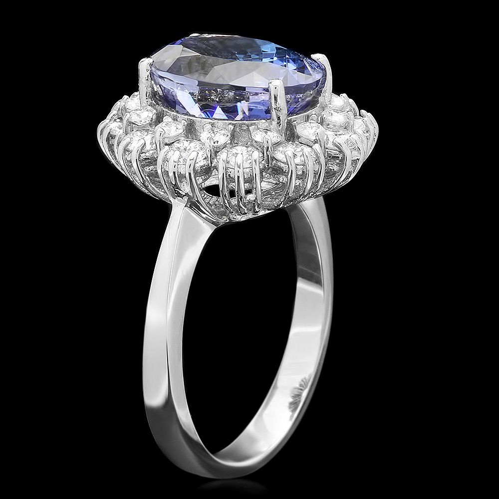 Retail: $12800.00 ****** Metal: 14k Solid White Gold / Size: 7.25 / Total Item Weight: 6 grams / Country Made: USA / / Main Stone: Tanzanite / Color: Blue / Carat Total Weight: 5.00 / Treatment: None / Clarity: Type 2 / Cut: Very Good / / Secondary Stone: Diamond / Carat Total Weight: 1.40 / Treatment: None / Color Grade: G - H / Clarity: SI1 - SI2 / Cut: Very Good / ****** Ref: JQL-R-4963