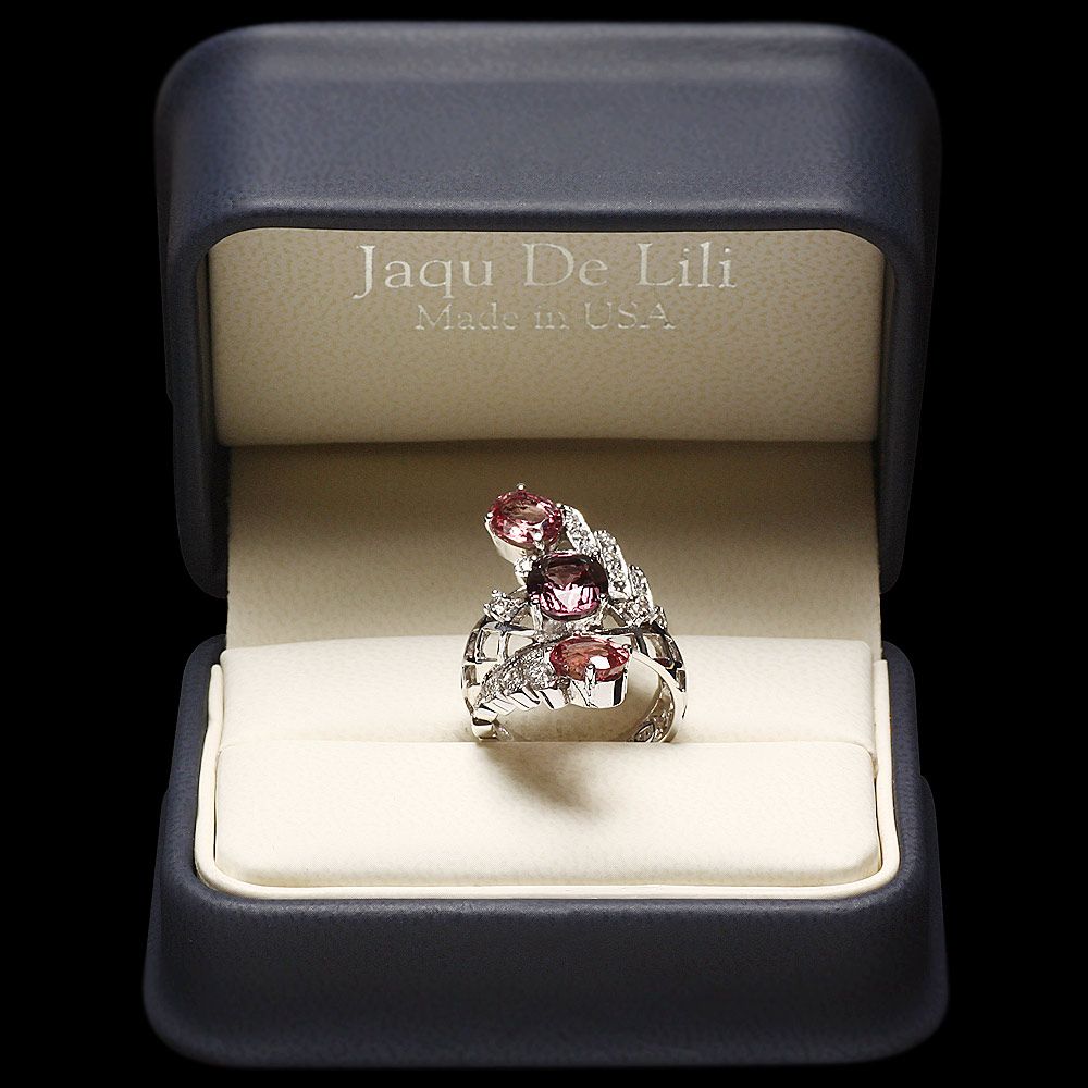 Retail: $9800.00 ****** Metal: 14k Solid White Gold / Size: 6.5 / Total Item Weight: 8.5 grams / Country Made: USA / / Main Stone: Spinel / Color: Purple / Carat Total Weight: 2.00 / Treatment: None / Clarity: Type 2 / Cut: Very Good / / Secondary Stone: Diamond / Carat Total Weight: 1.00 / Treatment: None / Color Grade: G - H / Clarity: SI1 - SI2 / Cut: Very Good / / Side Stone: Spinel / Color: Pink / Carat Total Weight: 3.50 / Treatment: None / Clarity: Type 2 / Cut: Very Good / ****** Ref: JQL-R-6970