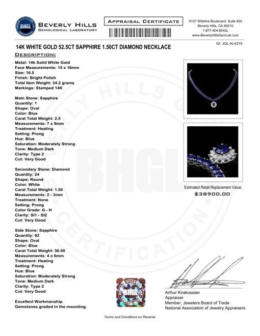 Regarding Appraised Jewelry and Loose Stones - WESTBURY AUCTION GALLERIES sends them out to a third party for Retail Replacement Value Appraisals, which are the most common. These types of evaluations are written for insurance needs. This would be the cost to replace the jewelry with an item of equal quality and kind, considered to be the current market price or the replacement value. This type of appraisal is done to protect you in the event of damage or loss of a valuable item. Our appraisals are conducted by independent 3rd Party appraisal firms that utilizes Certified GIA Gemologist. Appraisals should be used for verification of gemstone and/or metal weight, size, and grade only, not actual value. Appraisal value should be considered for insurance purposes only, not actual value, as price varies greatly from retail locations thru out the world. Items should not be purchased with the expectation to resell for appraisal price, or for profit.