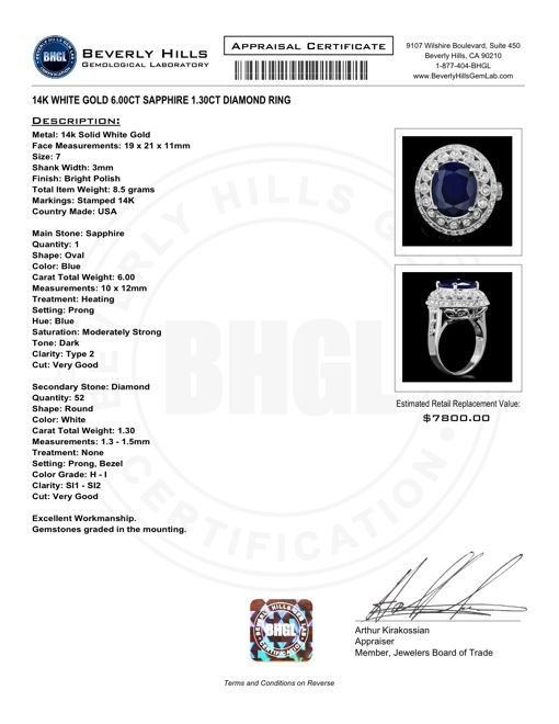 Regarding Appraised Jewelry and Loose Stones - WESTBURY AUCTION GALLERIES sends them out to a third party for Retail Replacement Value Appraisals, which are the most common. These types of evaluations are written for insurance needs. This would be the cost to replace the jewelry with an item of equal quality and kind, considered to be the current market price or the replacement value. This type of appraisal is done to protect you in the event of damage or loss of a valuable item. Our appraisals are conducted by independent 3rd Party appraisal firms that utilizes Certified GIA Gemologist. Appraisals should be used for verification of gemstone and/or metal weight, size, and grade only, not actual value. Appraisal value should be considered for insurance purposes only, not actual value, as price varies greatly from retail locations thru out the world. Items should not be purchased with the expectation to resell for appraisal price, or for profit.