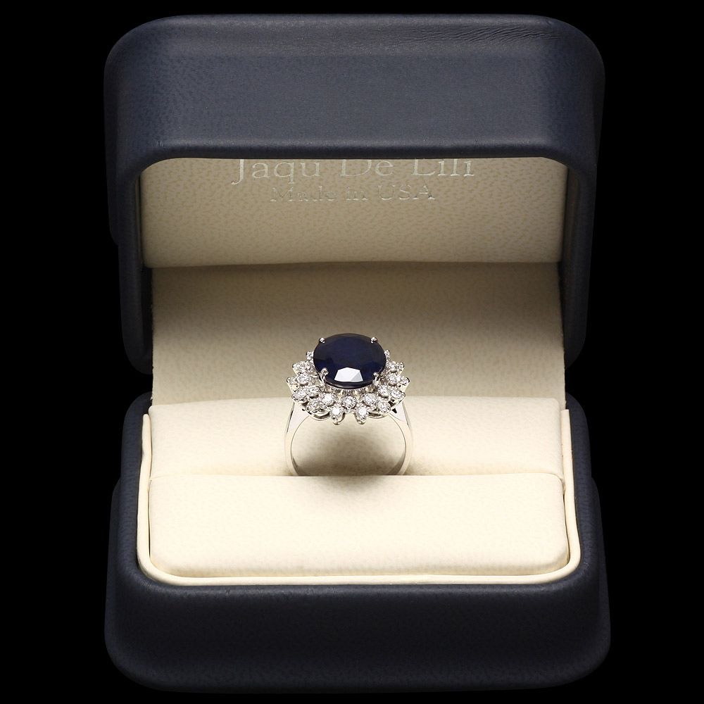 Retail: $6400.00 ****** Metal: 14k Solid White Gold / Size: 7 / Total Item Weight: 5.5 grams / Country Made: USA / / Main Stone: Sapphire / Color: Blue / Carat Total Weight: 6.50 / Treatment: Heating / Clarity: Type 2 / Cut: Very Good / / Secondary Stone: Diamond / Carat Total Weight: 0.85 / Treatment: None / Color Grade: G - H / Clarity: SI1 - SI2 / Cut: Very Good / ****** Ref: JQL-R-6184