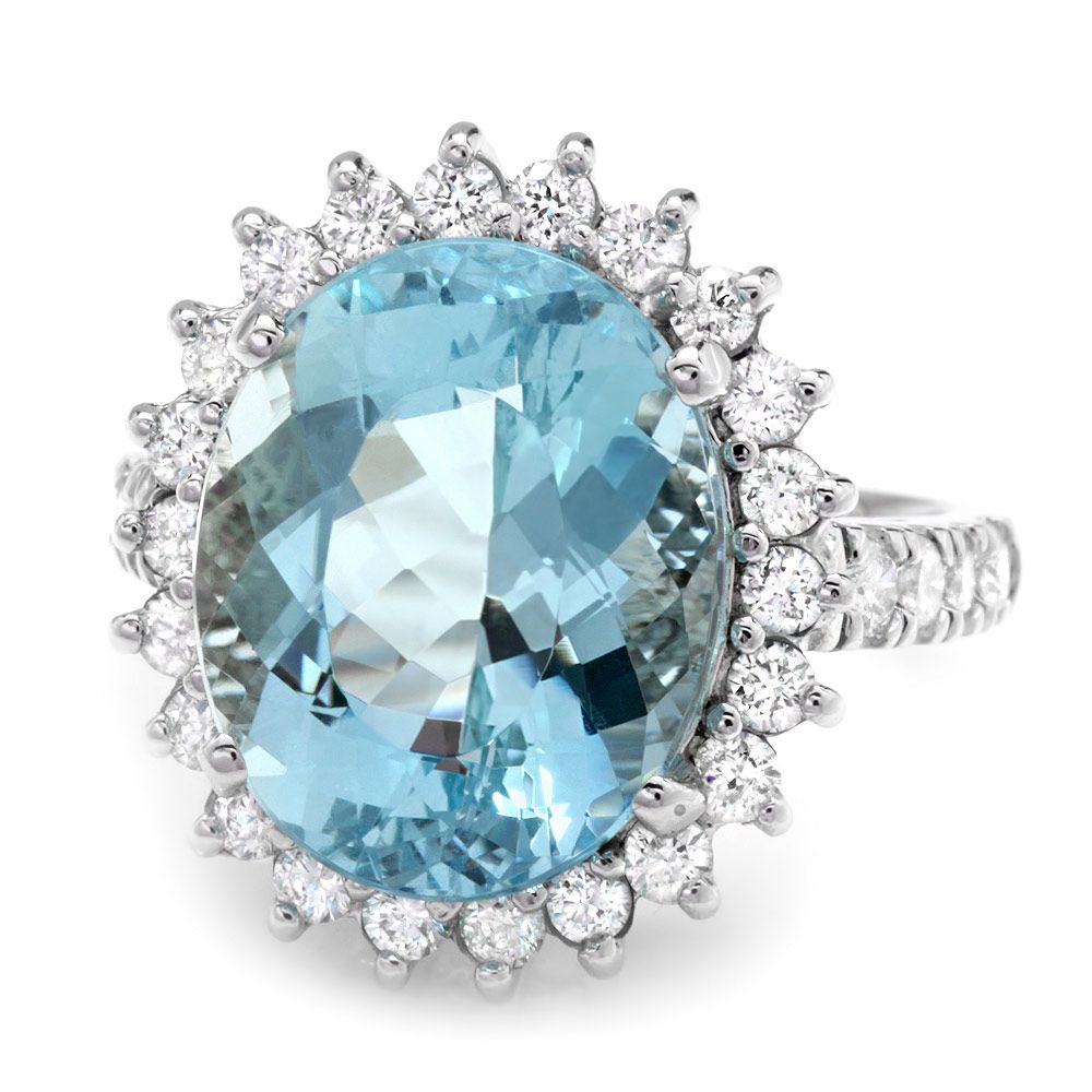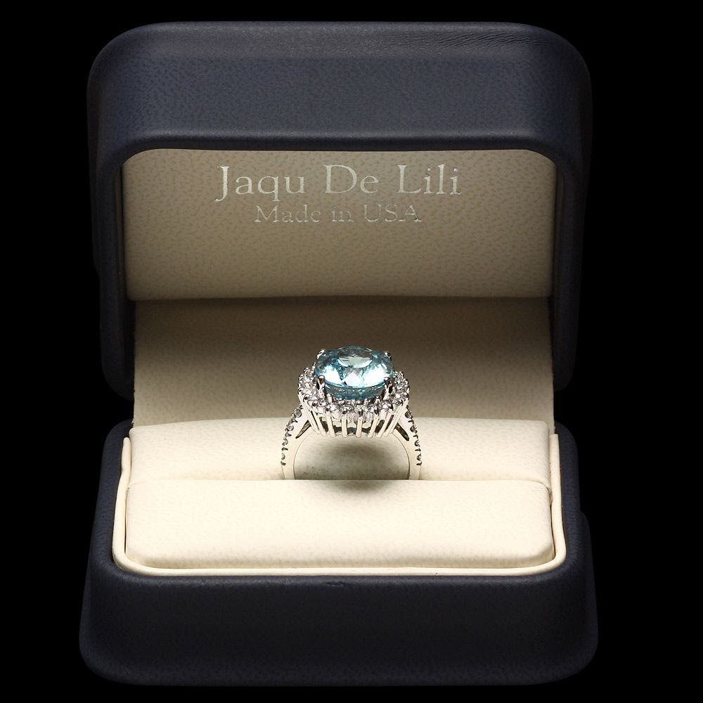 Retail: $11400.00 ****** Metal: 14k Solid White Gold / Size: 6.75 / Total Item Weight: 7.0 grams / Country Made: USA / / Main Stone: Aquamarine / Color: Aqua / Carat Total Weight: 7.50 / Treatment: None / Clarity: Type 2 / Cut: Very Good / / Secondary Stone: Diamond / Carat Total Weight: 1.00 / Treatment: None / Color Grade: G - H / Clarity: SI1 - SI2 / Cut: Very Good / ****** Ref: JQL-R-6231
