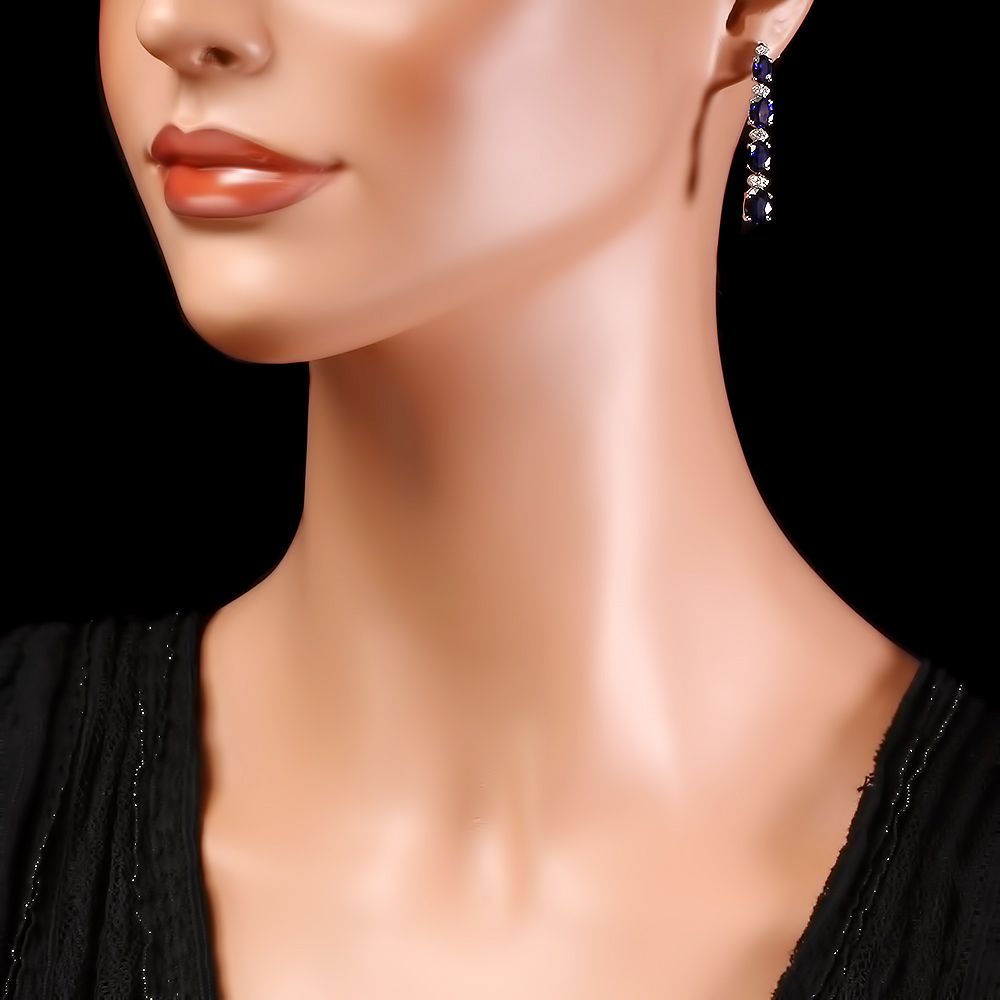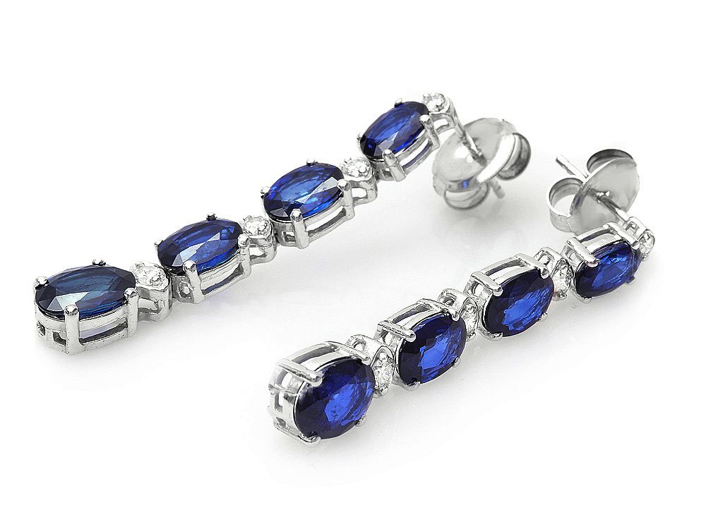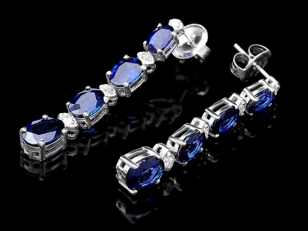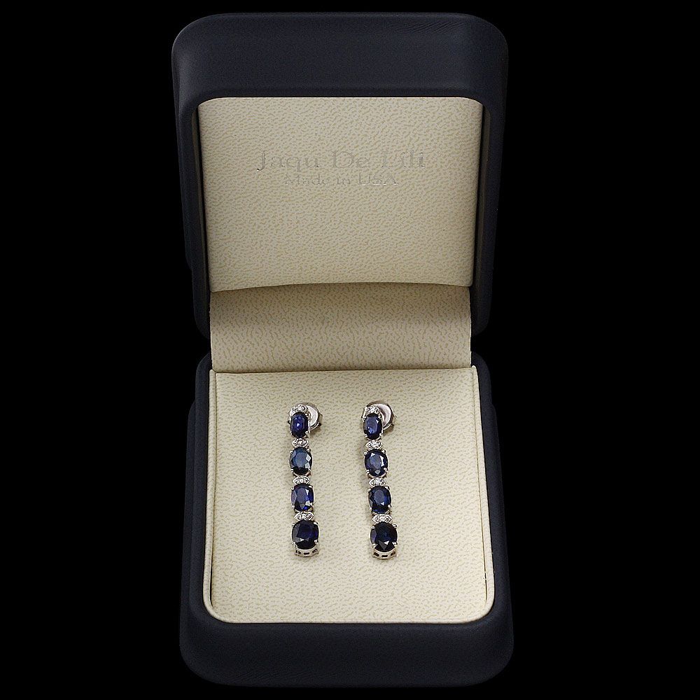 Retail: $4000.00 ****** Metal: 14k Solid White Gold / Total Item Weight: 5.0 grams / Country Made: USA / / Main Stone: Sapphire / Color: Blue / Carat Total Weight: 7.00 / Treatment: None / Clarity: Type 2 / Cut: Very Good / / Secondary Stone: Diamond / Carat Total Weight: 0.35 / Treatment: None / Color Grade: G - H / Clarity: SI1 - SI2 / Cut: Very Good / ****** Ref: JQL-ER-5720