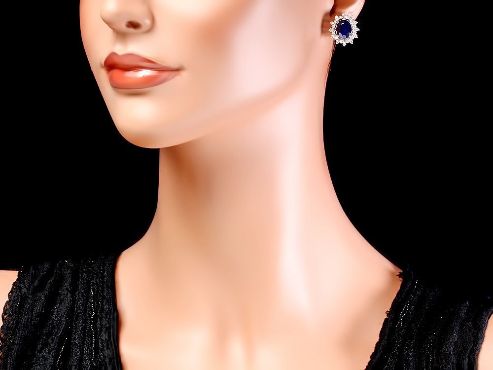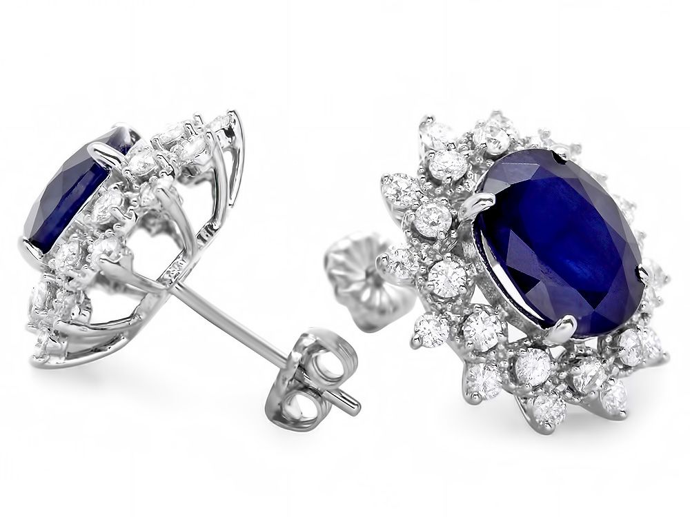 Retail: $8700.00 ****** Metal: 14k Solid White Gold / Total Item Weight: 6.0 grams / Country Made: USA / / Main Stone: Sapphire / Color: Blue / Carat Total Weight: 7.00 / Treatment: Heating / Clarity: Type 2 / Cut: Very Good / / Secondary Stone: Diamond / Carat Total Weight: 1.25 / Treatment: None / Color Grade: H - I / Clarity: SI1 - SI2 / Cut: Very Good / ****** Ref: JQL-ER-7194