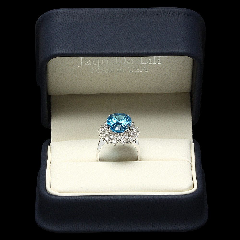 Retail: $6500.00 ****** Metal: 14k Solid White Gold / Size: 7 / Total Item Weight: 6.3 grams / Country Made: USA / / Main Stone: Topaz / Color: Blue / Carat Total Weight: 8.40 / Treatment: None / Clarity: Type 2 / Cut: Excellent / / Secondary Stone: Diamond / Carat Total Weight: 0.70 / Treatment: None / Color Grade: G - H / Clarity: SI1 - SI2 / Cut: Very Good / ****** Ref: JQL-R-4162