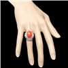 This luxurious ladies ring is crafted in solid 14k White Gold and features a 9.00 carat 100% Natural Coral mined from Italy + accented with 26 sparkling eye-clean natural Diamonds, totaling 1.35 carats. Excellent craftsmanship. Made in USA.