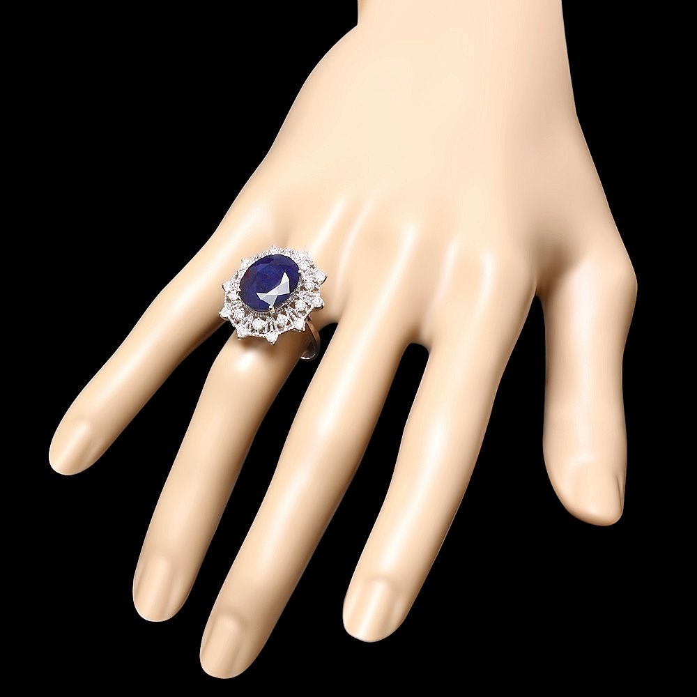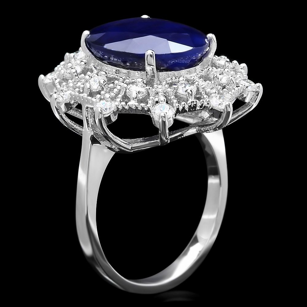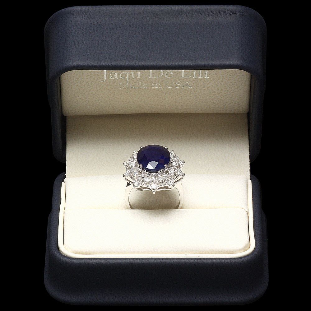Retail: $8300.00 ****** Metal: 14k Solid White Gold / Size: 7.5 / Total Item Weight: 7.5 grams / Country Made: USA / / Main Stone: Sapphire / Color: Blue / Carat Total Weight: 9.00 / Treatment: Heating / Clarity: Type 2 / Cut: Very Good / / Secondary Stone: Diamond / Carat Total Weight: 0.85 / Treatment: None / Color Grade: H - I / Clarity: SI1 - SI2 / Cut: Very Good / ****** Ref: JQL-R-4667