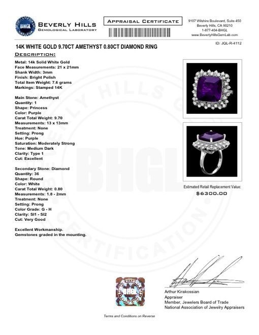 Regarding Appraised Jewelry and Loose Stones - WESTBURY AUCTION GALLERIES sends them out to a third party for Retail Replacement Value Appraisals, which are the most common. These types of evaluations are written for insurance needs. This would be the cost to replace the jewelry with an item of equal quality and kind, considered to be the current market price or the replacement value. This type of appraisal is done to protect you in the event of damage or loss of a valuable item. Our appraisals are conducted by independent 3rd Party appraisal firms that utilizes Certified GIA Gemologist. Appraisals should be used for verification of gemstone and/or metal weight, size, and grade only, not actual value. Appraisal value should be considered for insurance purposes only, not actual value, as price varies greatly from retail locations thru out the world. Items should not be purchased with the expectation to resell for appraisal price, or for profit.