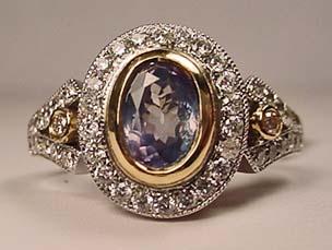 14K WHITE GOLD ALEXANDRITE AND DIAMOND LADIES RING - SIZE 7 - Comes with AIG Appraisal of $18,800.00. Also Comes with GIA Appraisal for the Alexandrite Stone. 1 Bezel Set Oval Mixed Cut Alexandrite. 48 Bead and Bezal Set Round Brilliant Cut Diamonds. Alexandrite - 0.90 CT., Diamonds - 0.50 CT., TW - 6.13 Grams. Stone Turns from Green to Purcple Color Depending on Light - Photos Shown in AIG Appraisal.