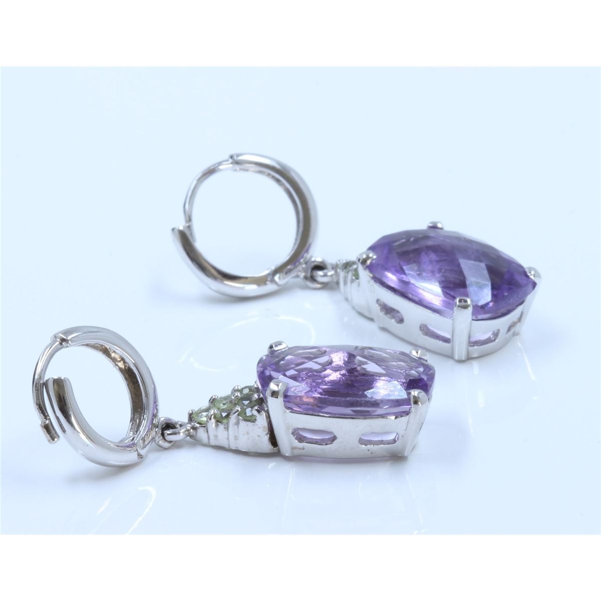 14K WHITE GOLD AMETHYST EARRING:7.1g/Peridot:/Amethyst:11.28ct