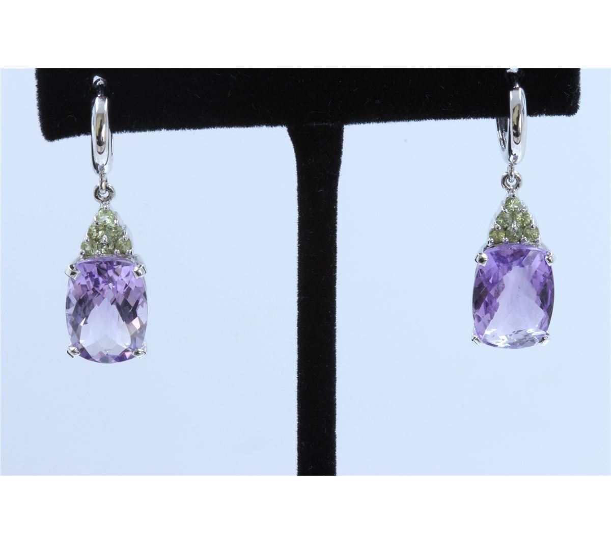 14K WHITE GOLD AMETHYST EARRING:7.1g/Peridot:/Amethyst:11.28ct