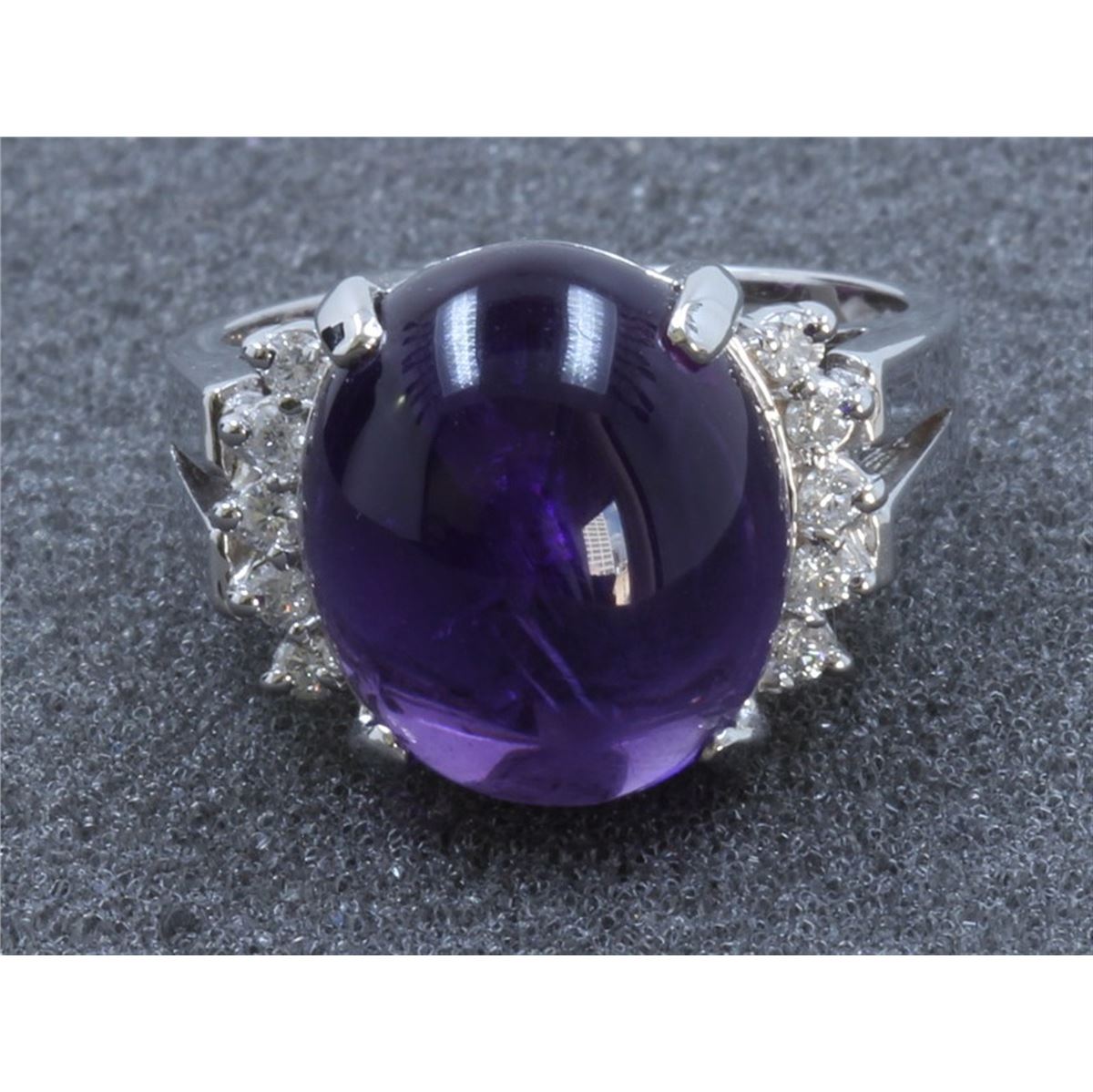 14K WHITE GOLD AMETHYST RING:7.04g/Diamond:0.22ct/Amethyst:8.83ct