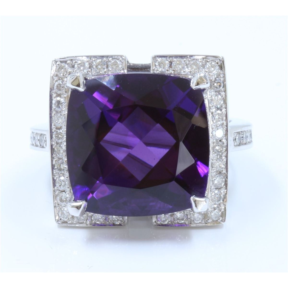 14K WHITE GOLD AMETHYST RING 14K:18g/Diamond:0.74ct/Amethyst:18.38ct