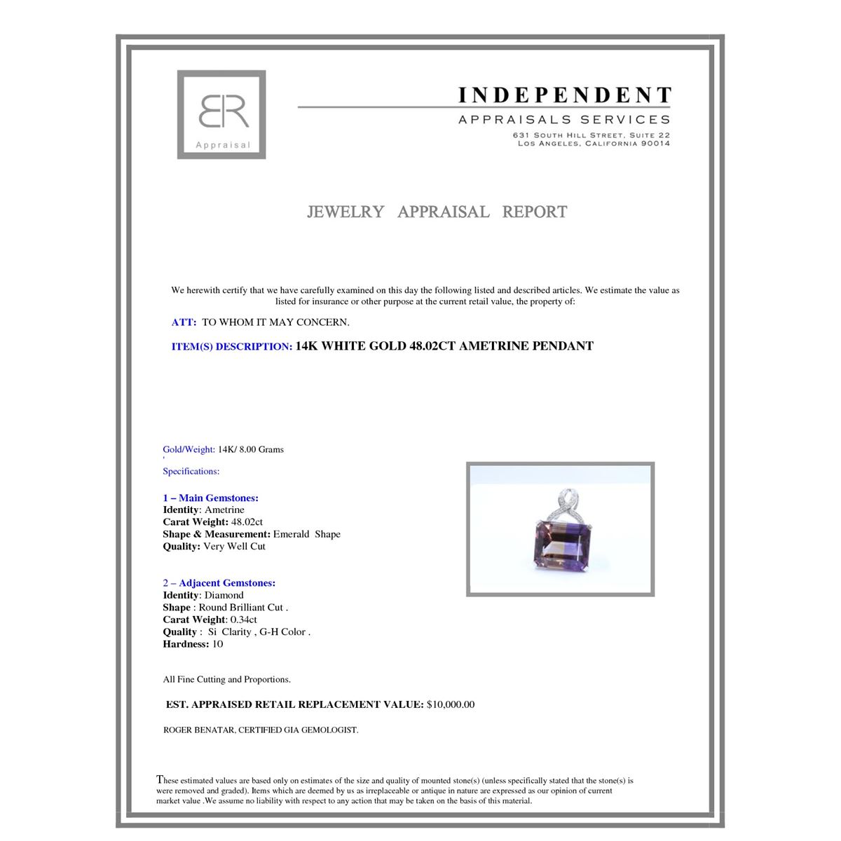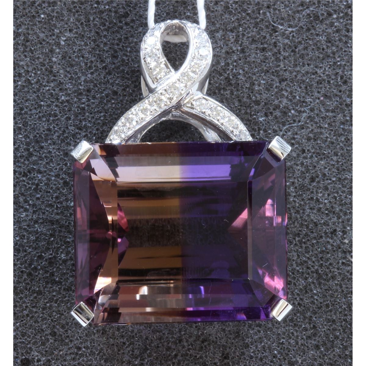14K WHITE GOLD AMETRINE PENDANT:8g/Diamond:0.34ct/Ametrine:48.02ct