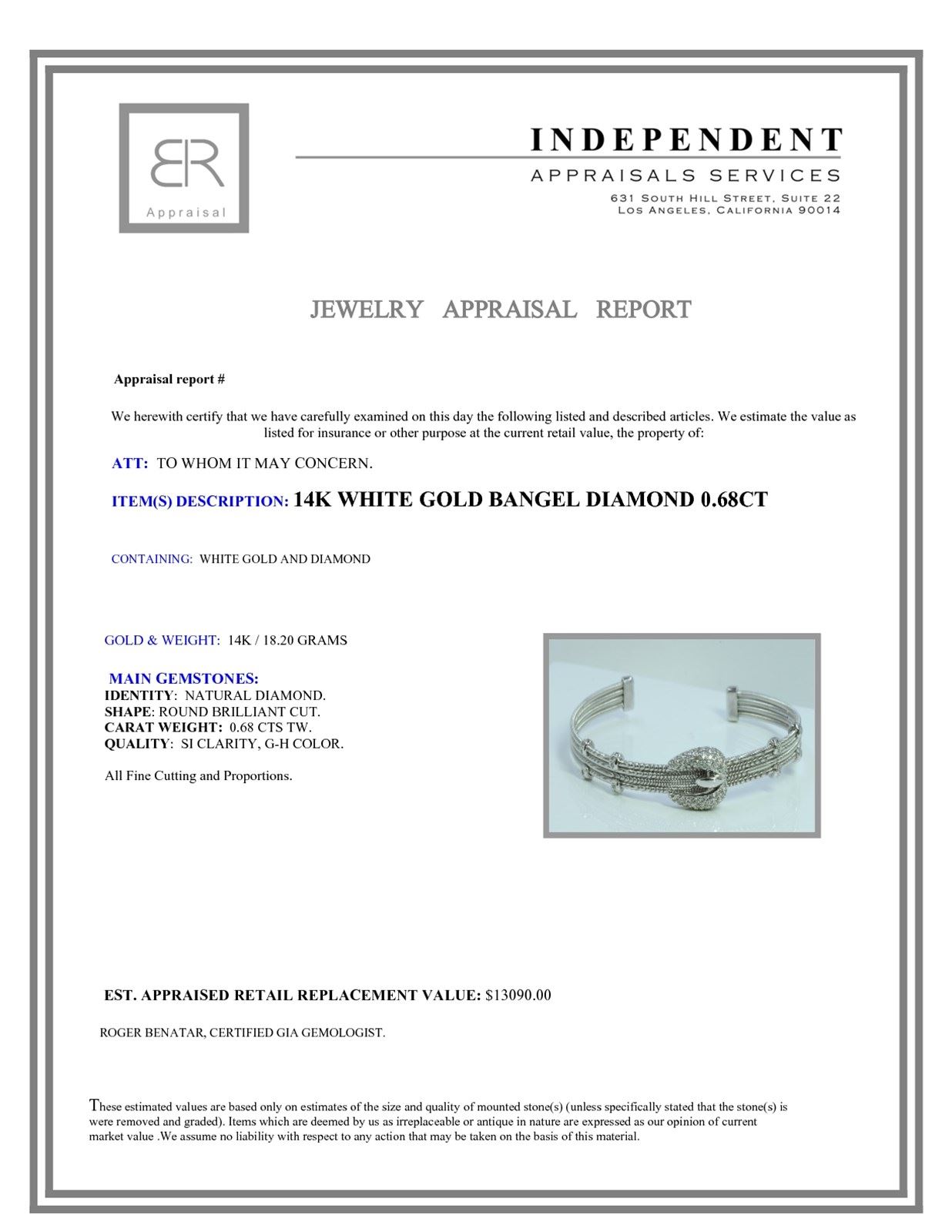14K WHITE GOLD BANGEL 18.20GRAM DIAMOND 0.68CT